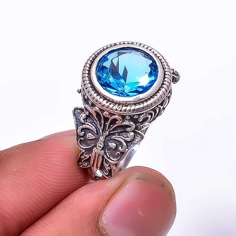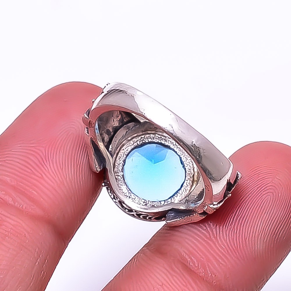 London Blue Topaz Solitaire Gemstone Handmade 925 Sterling Silver Ring s.9 Sku47