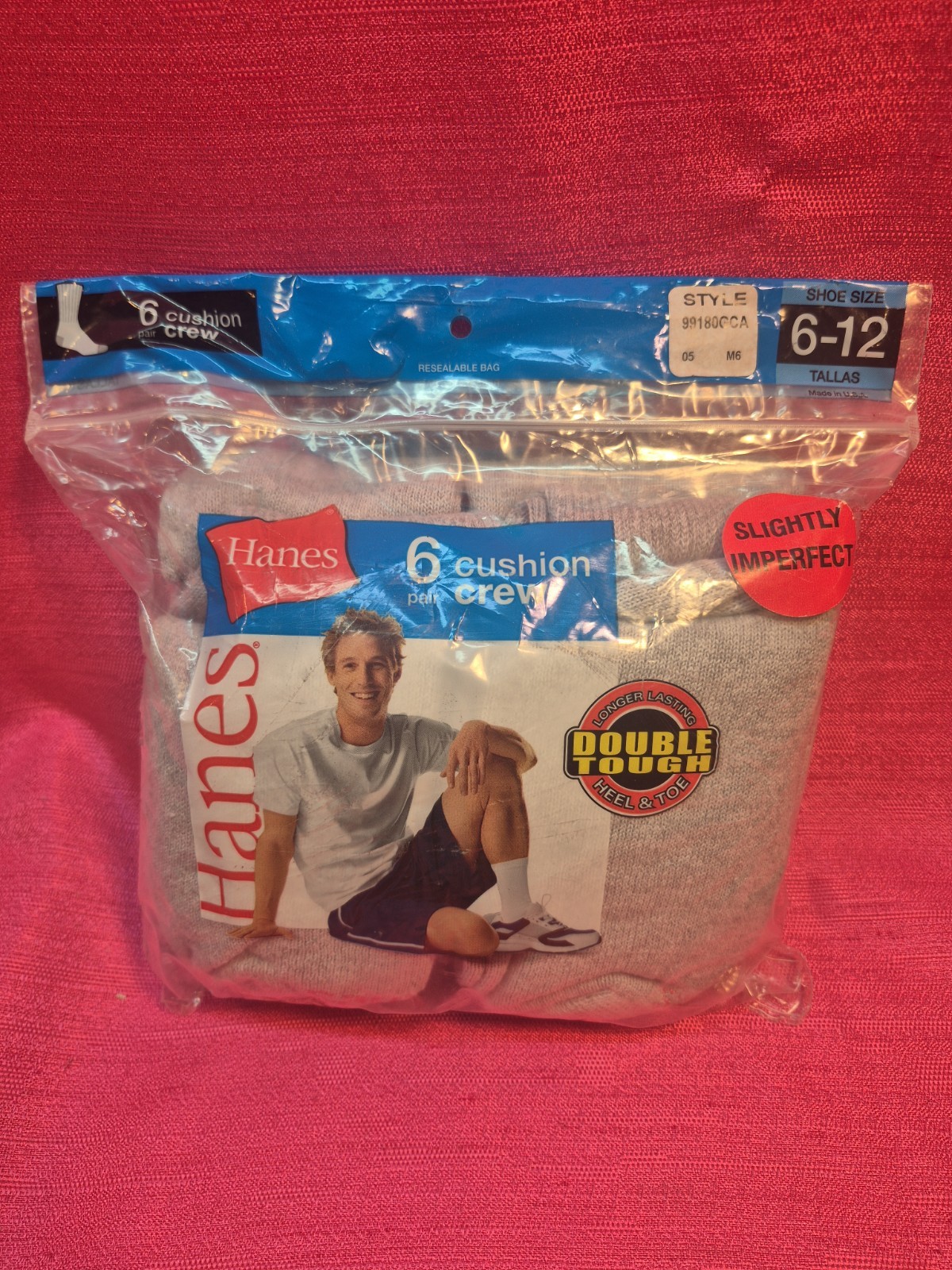 Vintage Hanes Crew Socks 6 Pair Cushion Gray Men s Shoe Size 6 12 Slightly Impr.