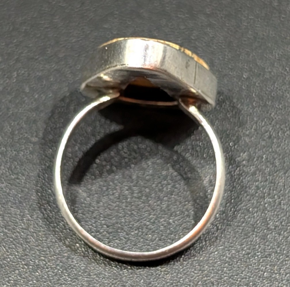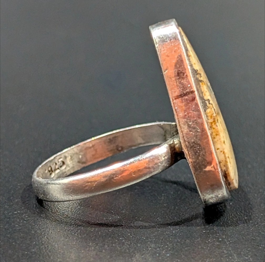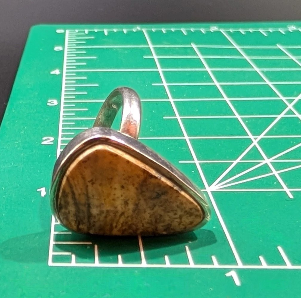 как выглядит Sterling Picture Jasper Semi Precious Stone Ring Earth Tone Triangle Sz 7.5 фото