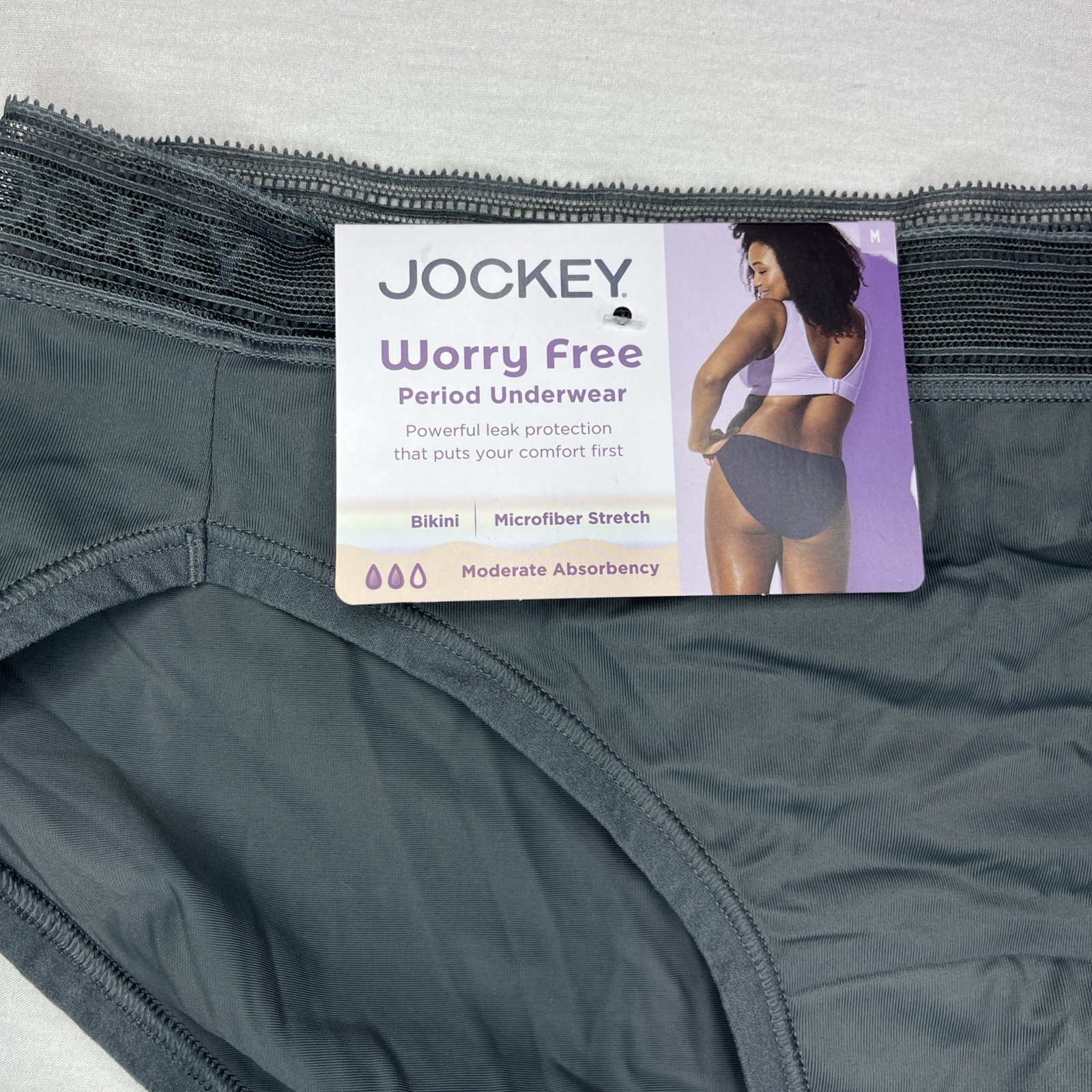 NWT New Jockey Charcoal Gray Worry-Free Moderate Absorbency Bikini Med Lace Band
