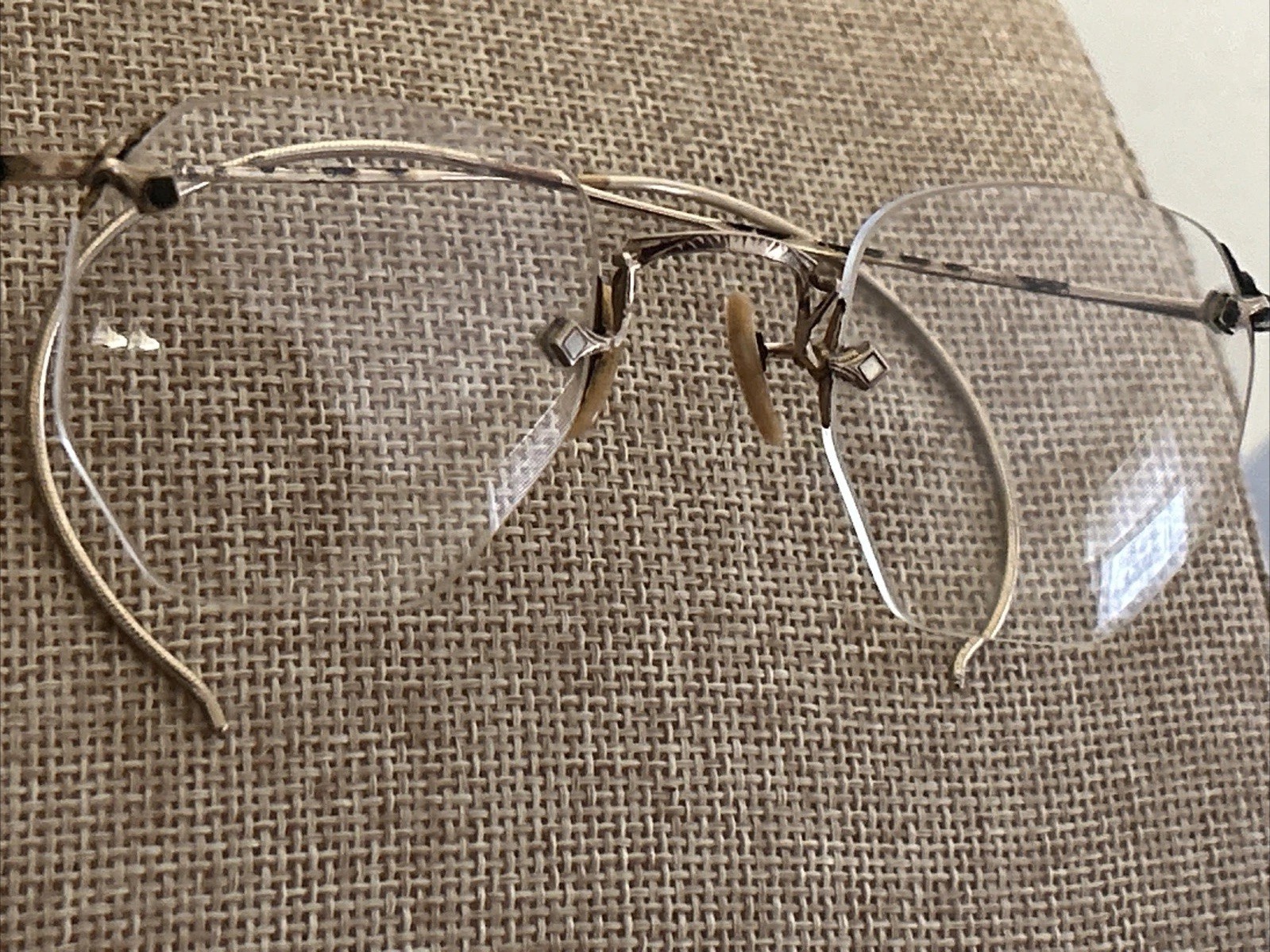 ANTIQUE SHURON RIMLESS EYE GLASSES 1/10 12K GOLD FILLED GF FANCY RARE Vintage