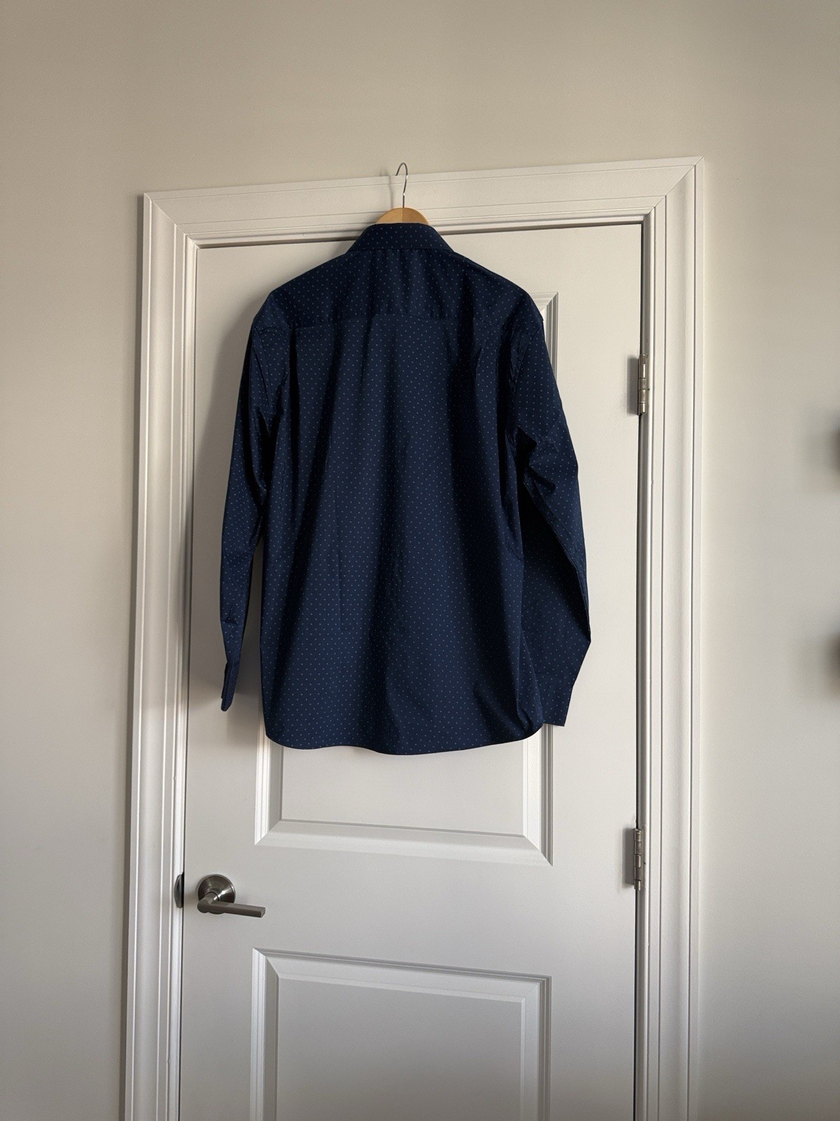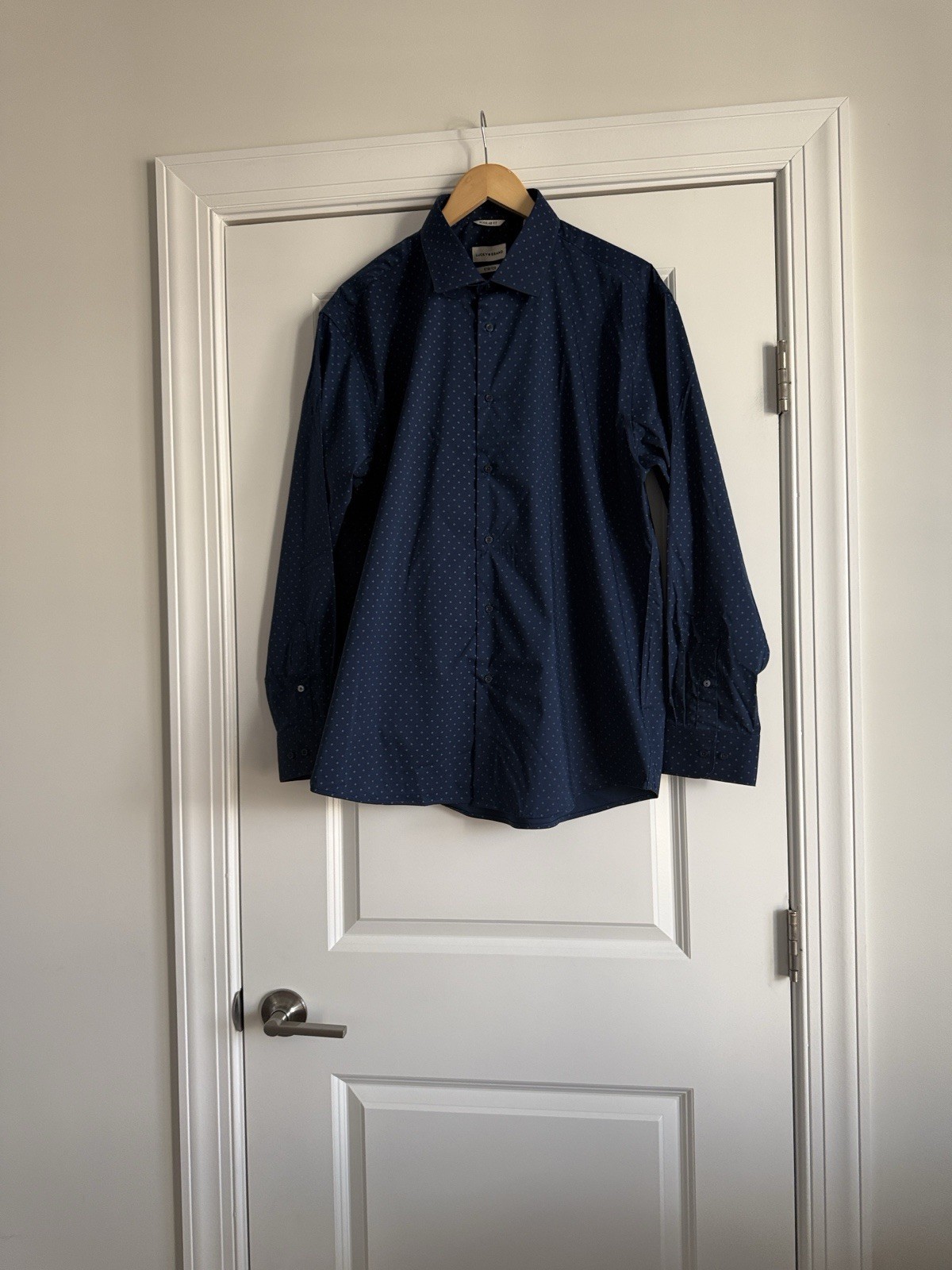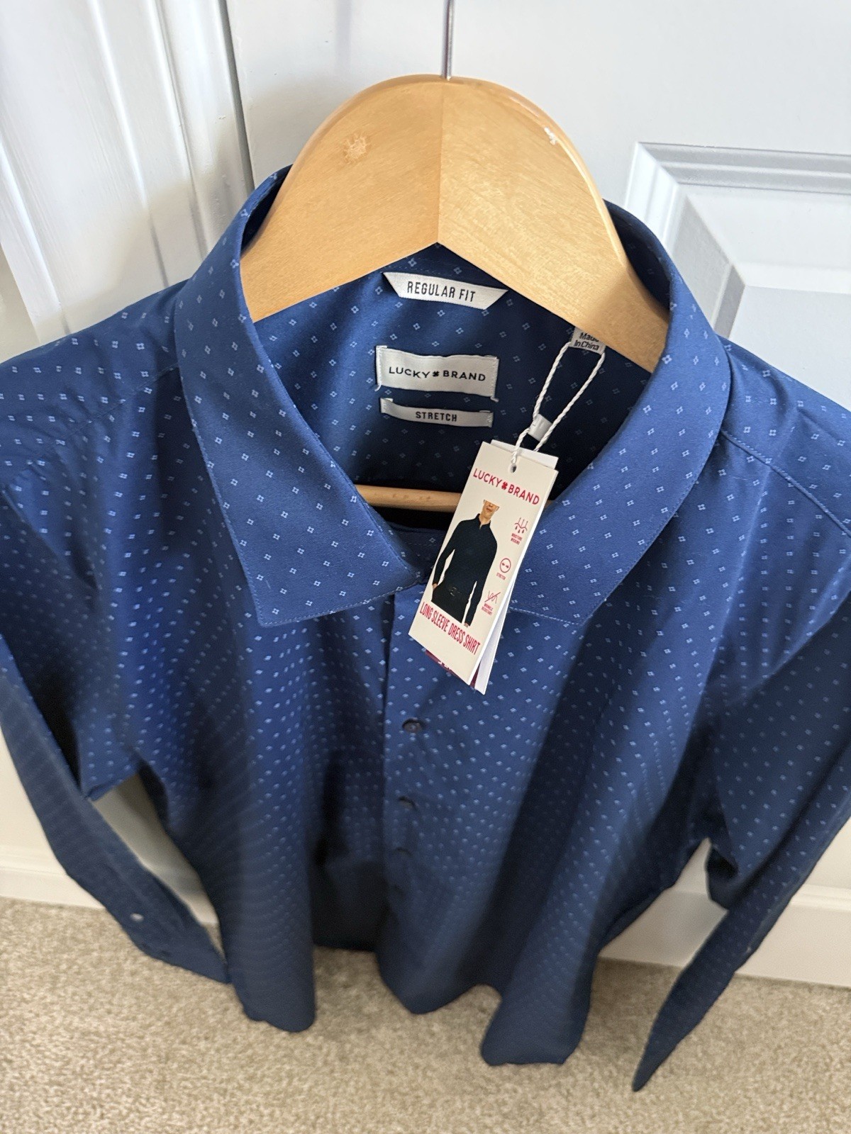 как выглядит Lucky Brand Mens Regular Fit Stretch Dress Shirt Blue Geometric Long Sleeve фото