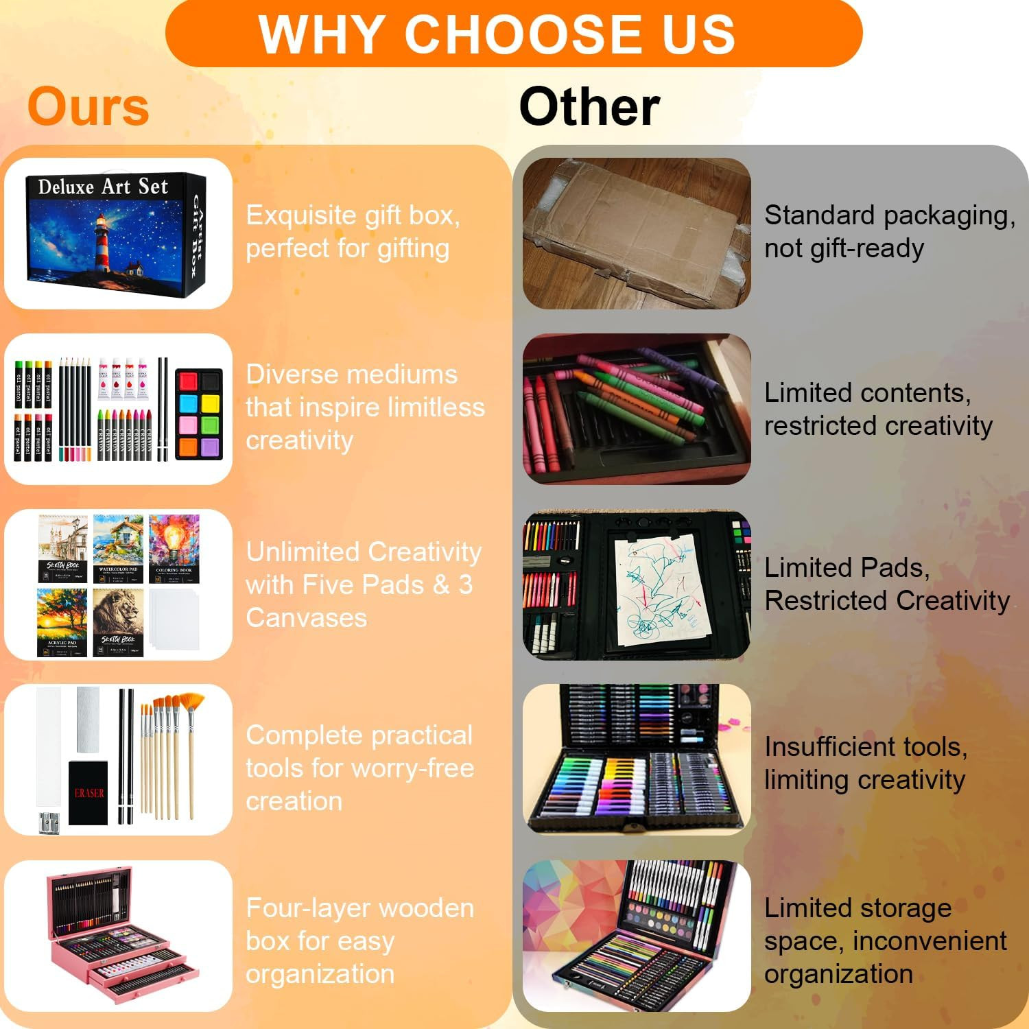 196 Piece Art Kit, Deluxe Art Supplies Painting Art Set with 5 Drawing Pad, Canv