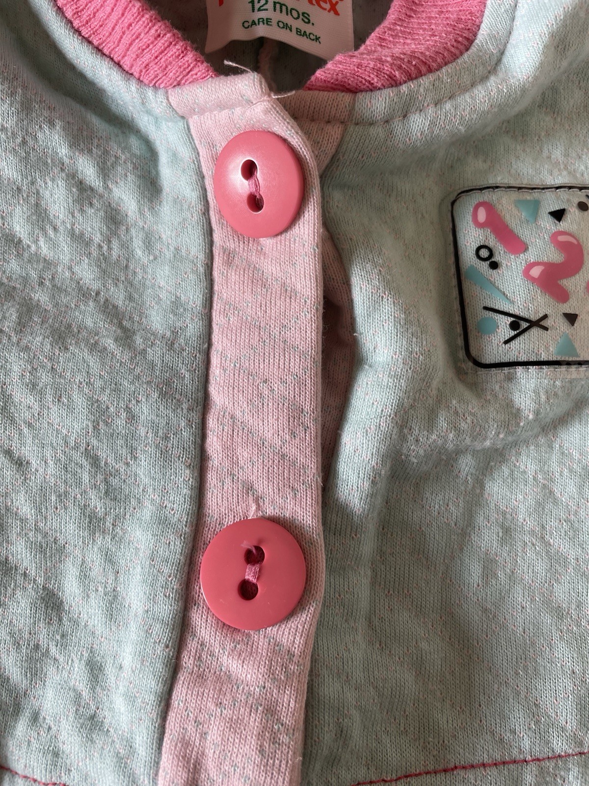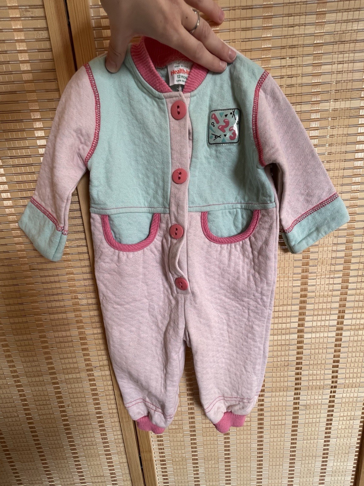 как выглядит VTG Health-Tex 80s 90s One Piece Romper 1,2,3 Pastel Pink Green 12 Months READ фото