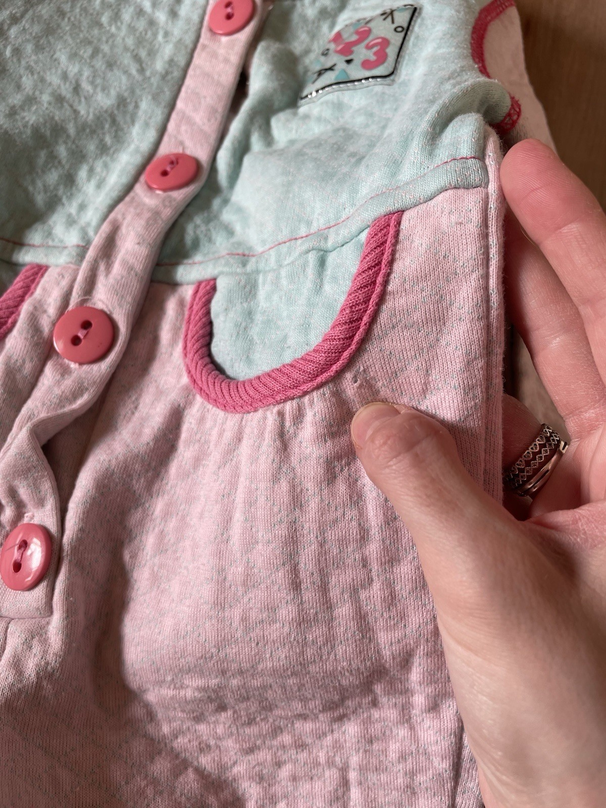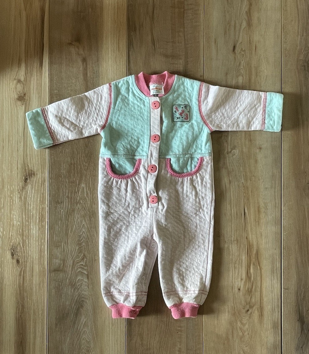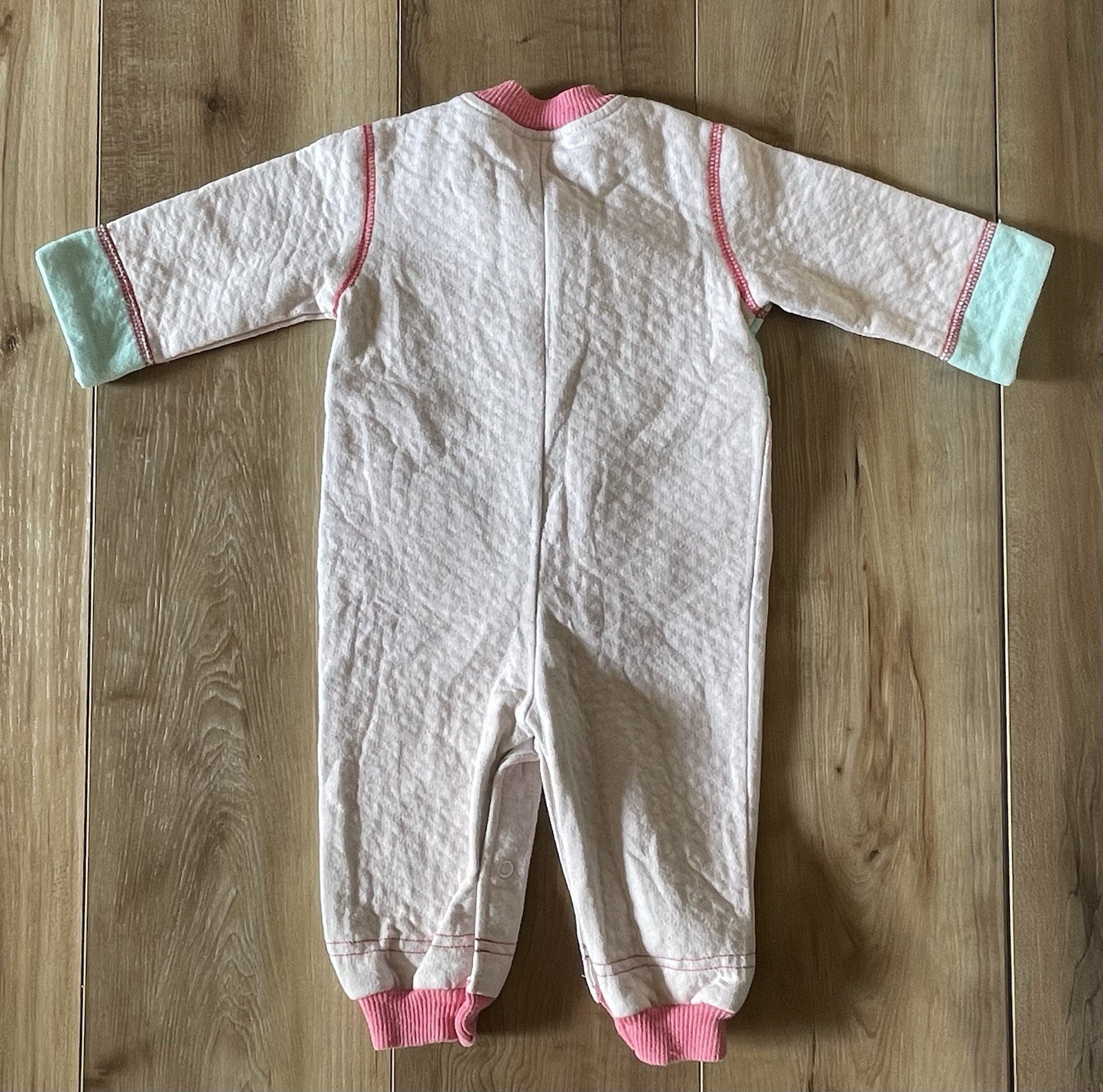 VTG Health-Tex 80s 90s One Piece Romper 1,2,3 Pastel Pink Green 12 Months READ