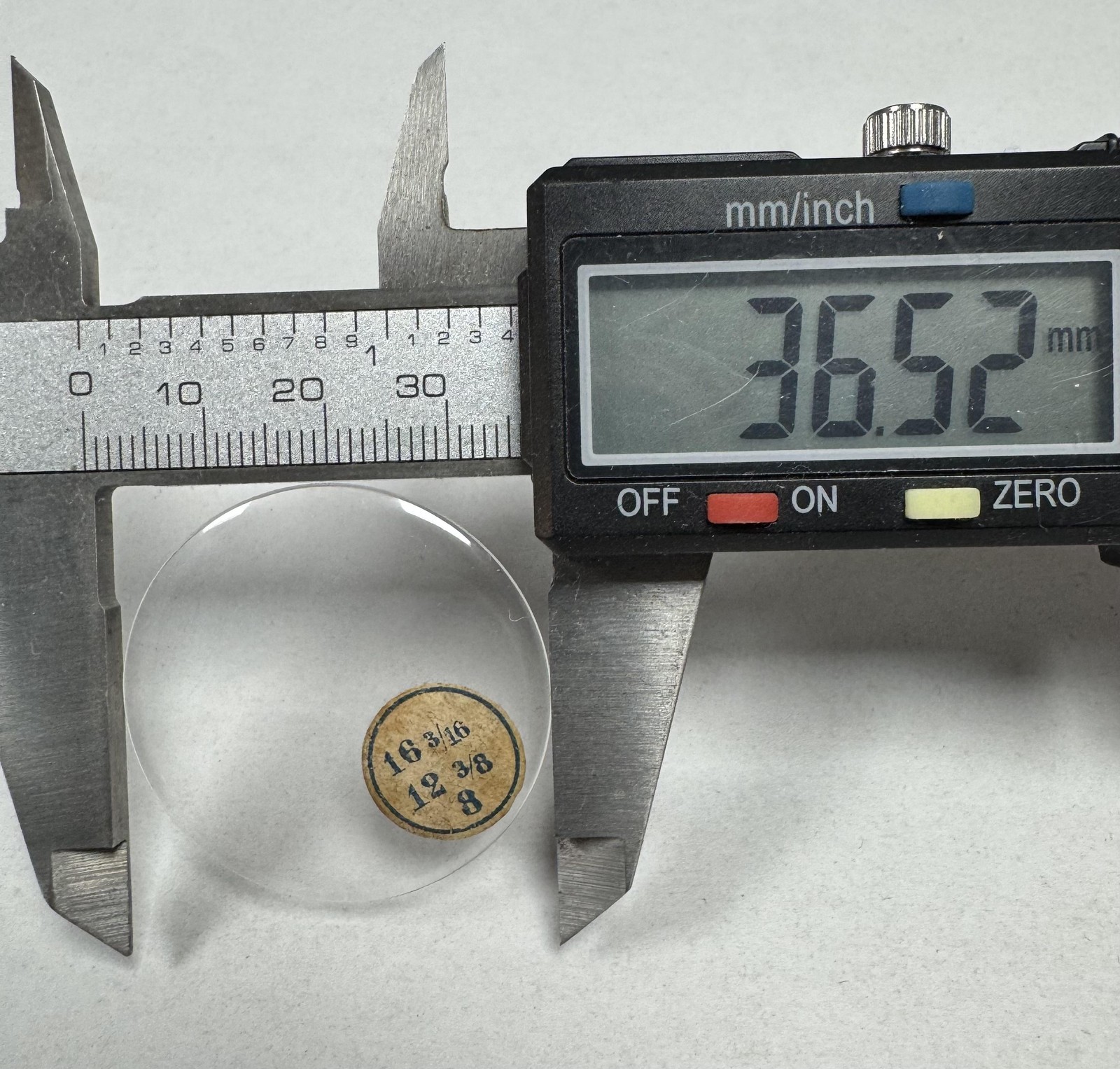 Vintage Unmarked Round Glass Pocket Watch Crystal 36.52mm 16 3/16 12 3/8 8 Clear