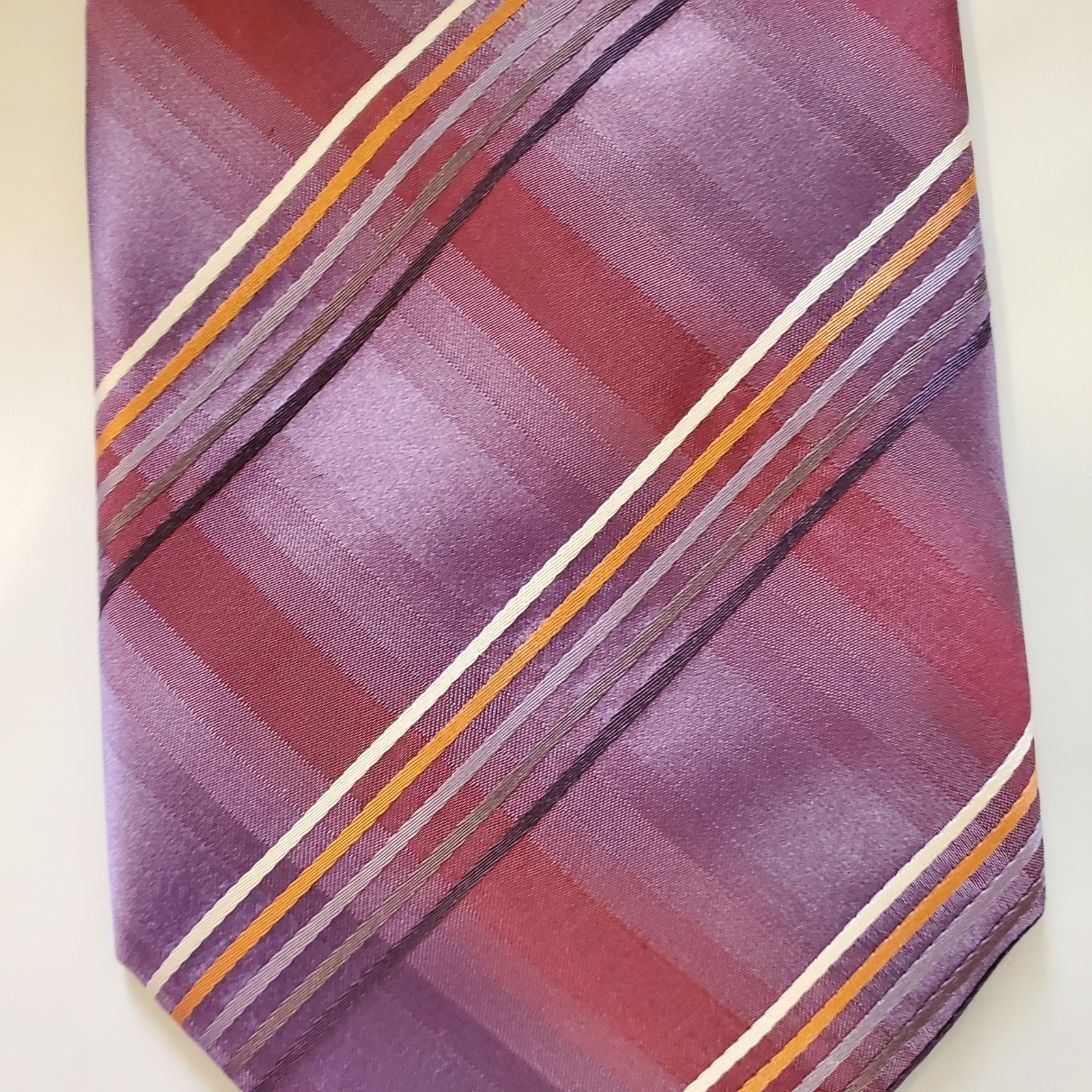 Kenneth Cole New York Mens Silk Tie Purple Burgundy Striped Plaid Hand Made 4in