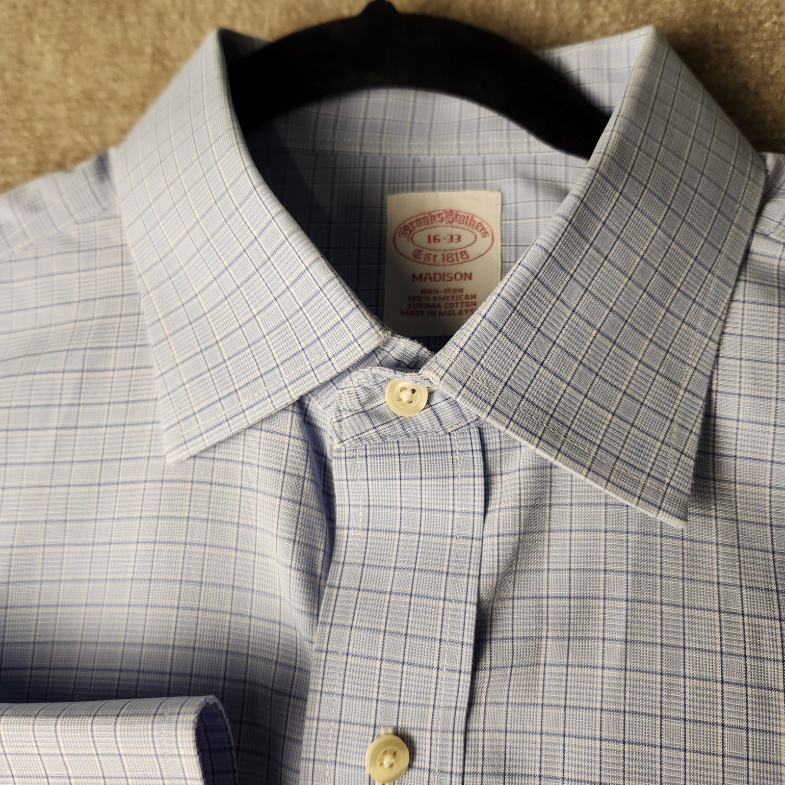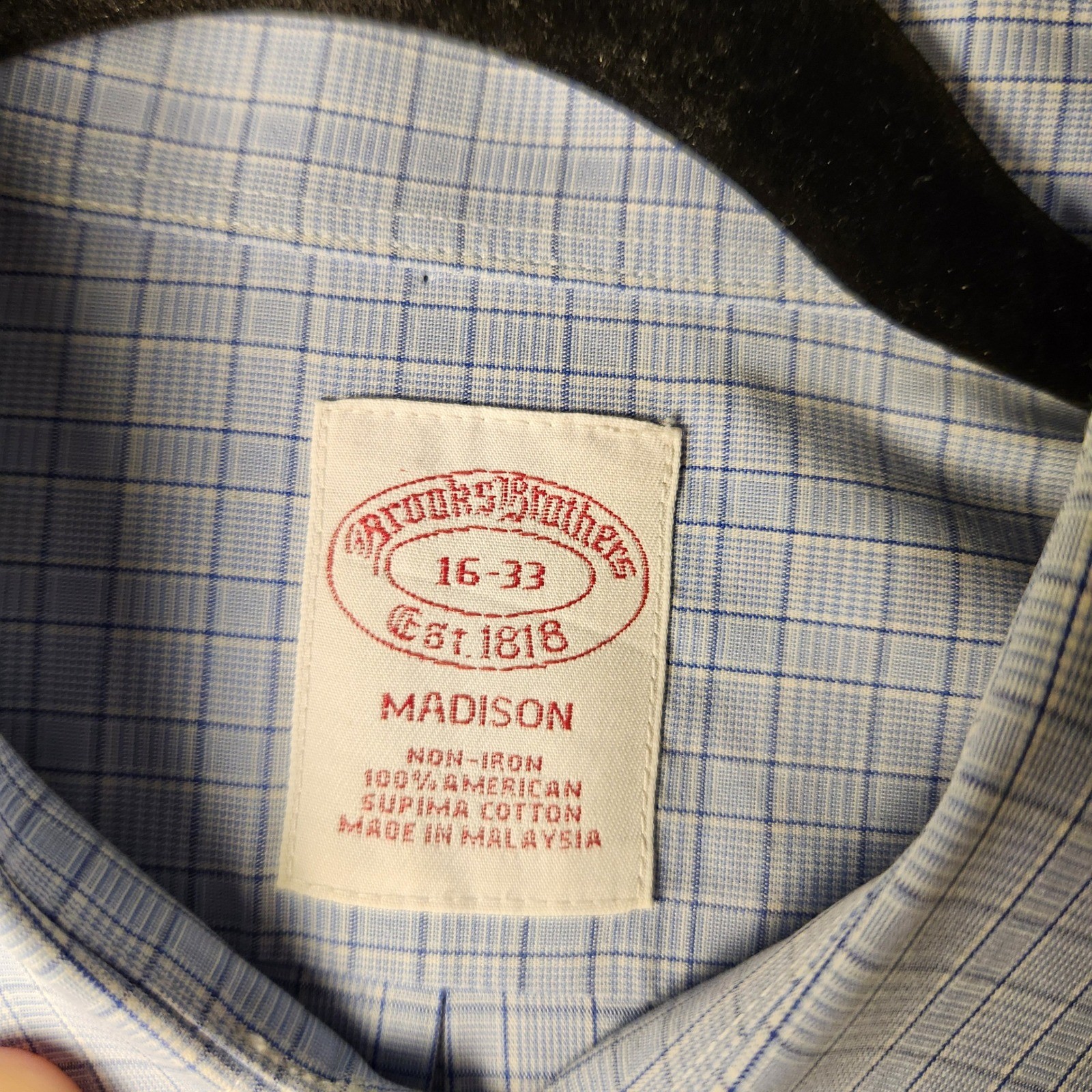 Brooks Brothers Madison Fit Light Blue Gingham Dress Shirt Mens 16 33 Non Iron