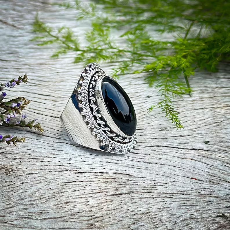 Black Onyx Statement Ring: Handmade 925 Sterling Silver Boho Jewelry All Size