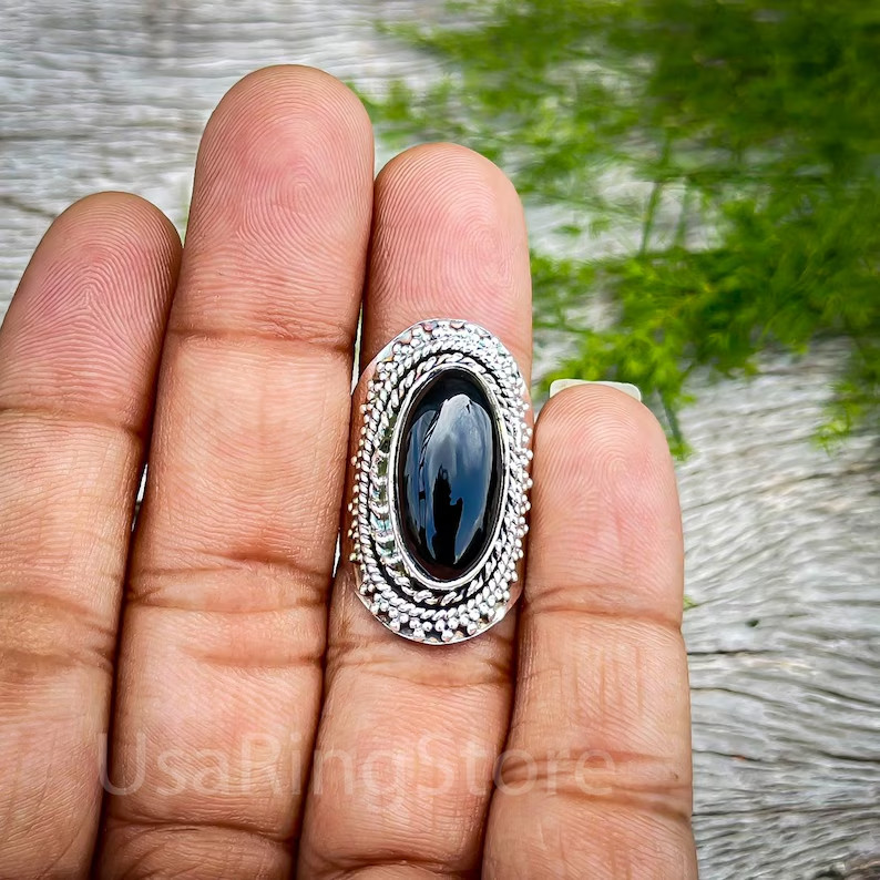 как выглядит Black Onyx Statement Ring: Handmade 925 Sterling Silver Boho Jewelry All Size фото