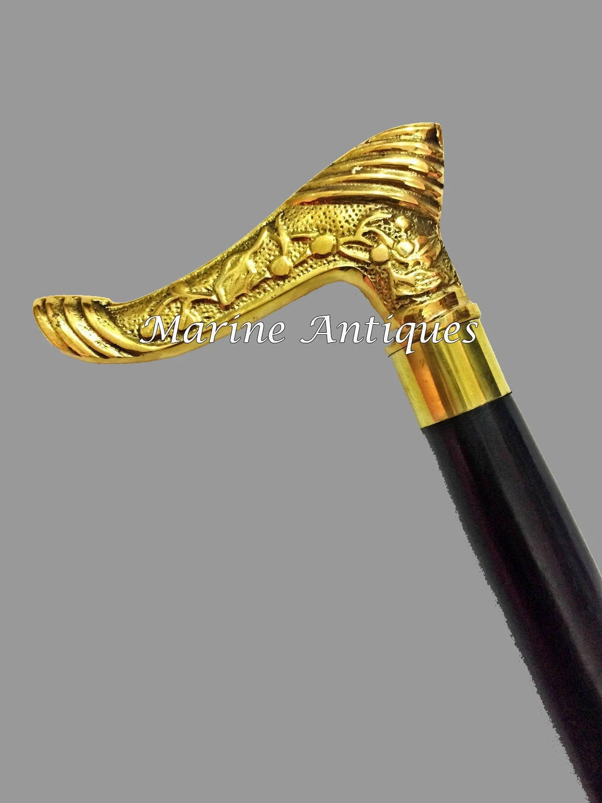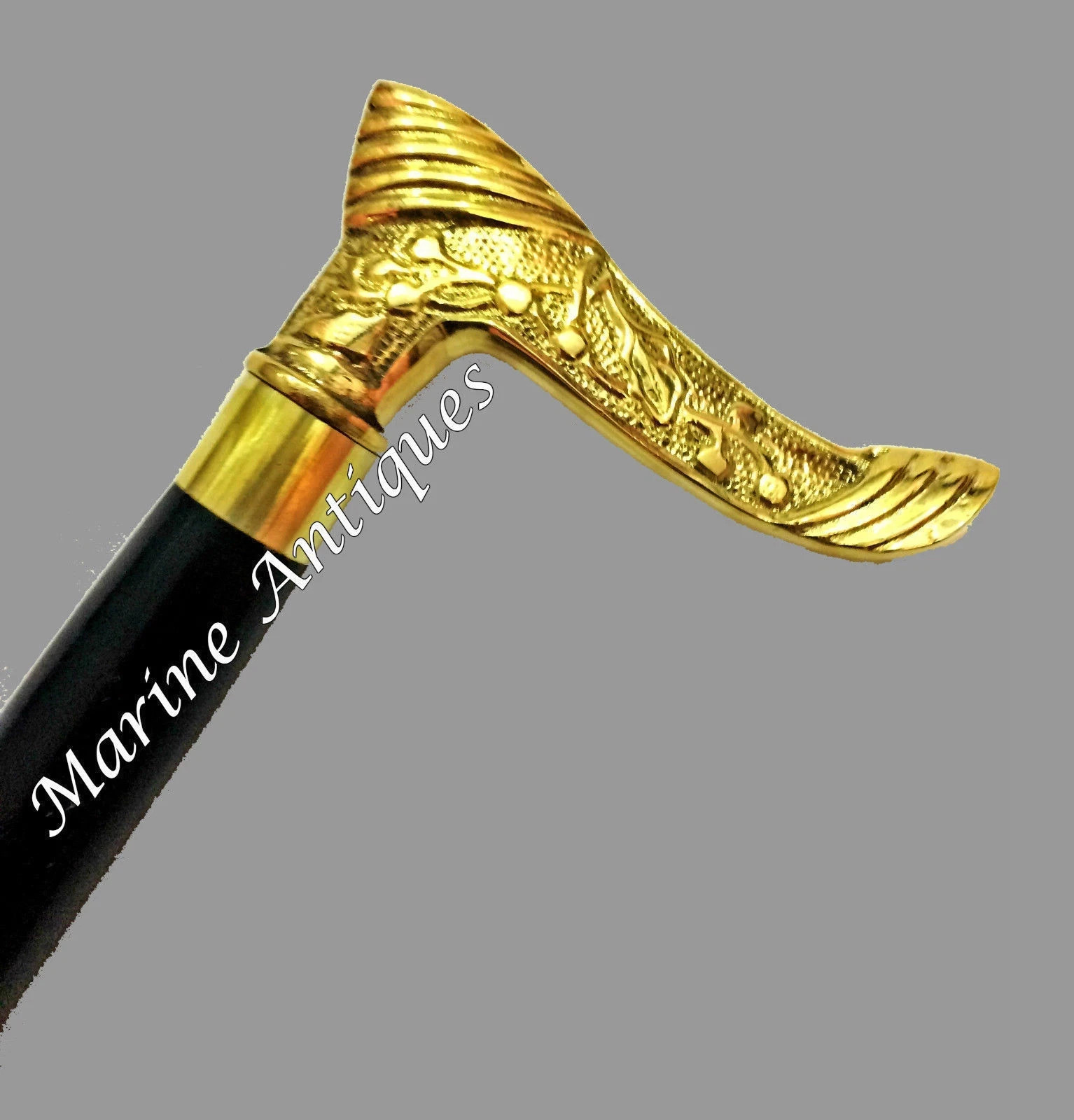 Antique Brass Designer Handle Black Wooden Walking Stick Vintage Victorian Cane
