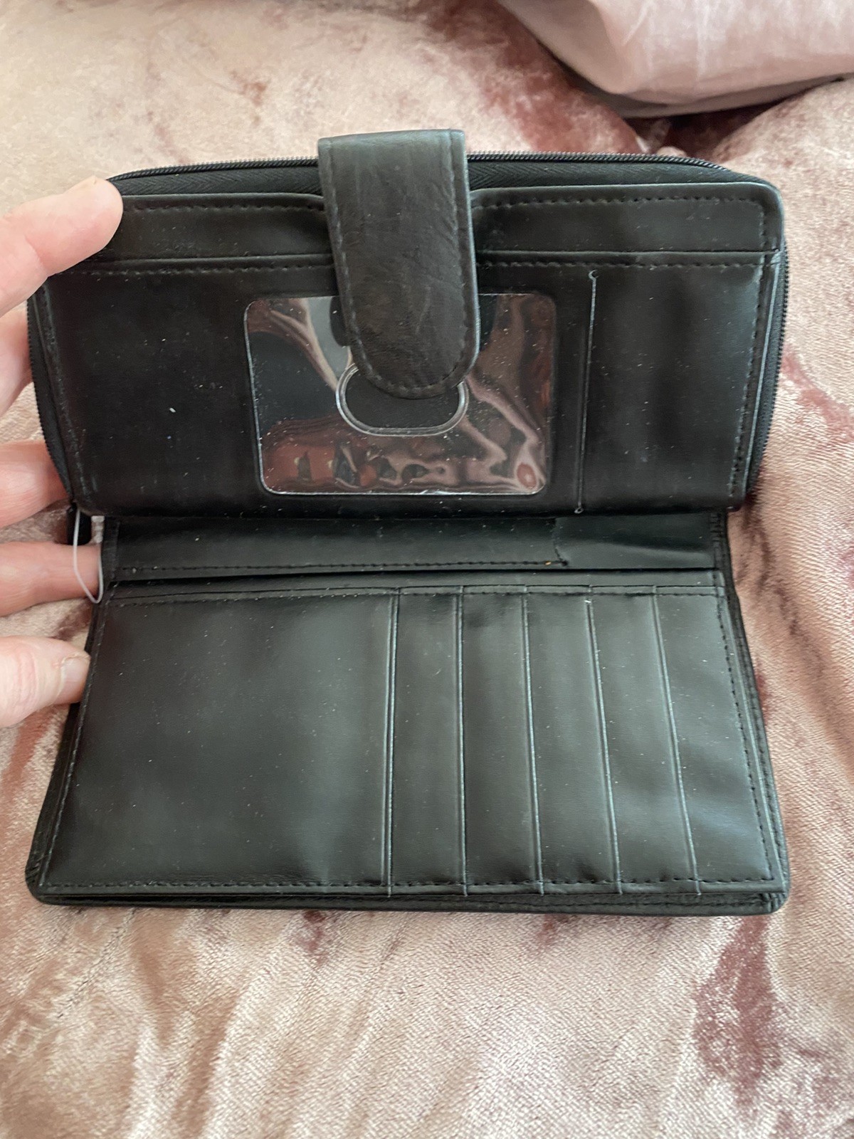 как выглядит Julia Buxton Heiress Black Leather Pik-Me-Up Checkbook Keeper Wallet NWOT фото