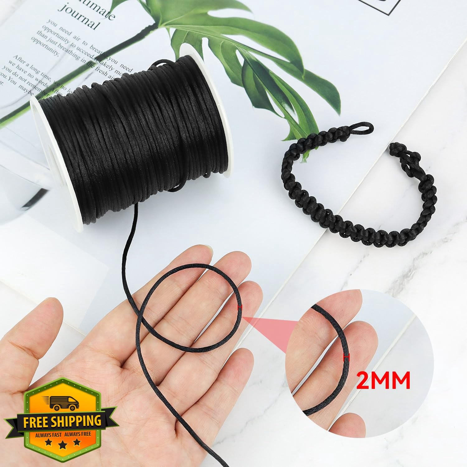 Black Nylon Braided String Cord 2mm 110 Yds for Jewelry
