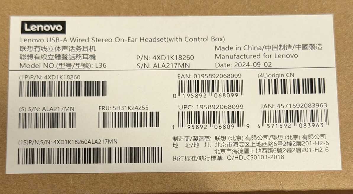 Lenovo USB-A Wired Stereo On-Ear Headset with Control Box