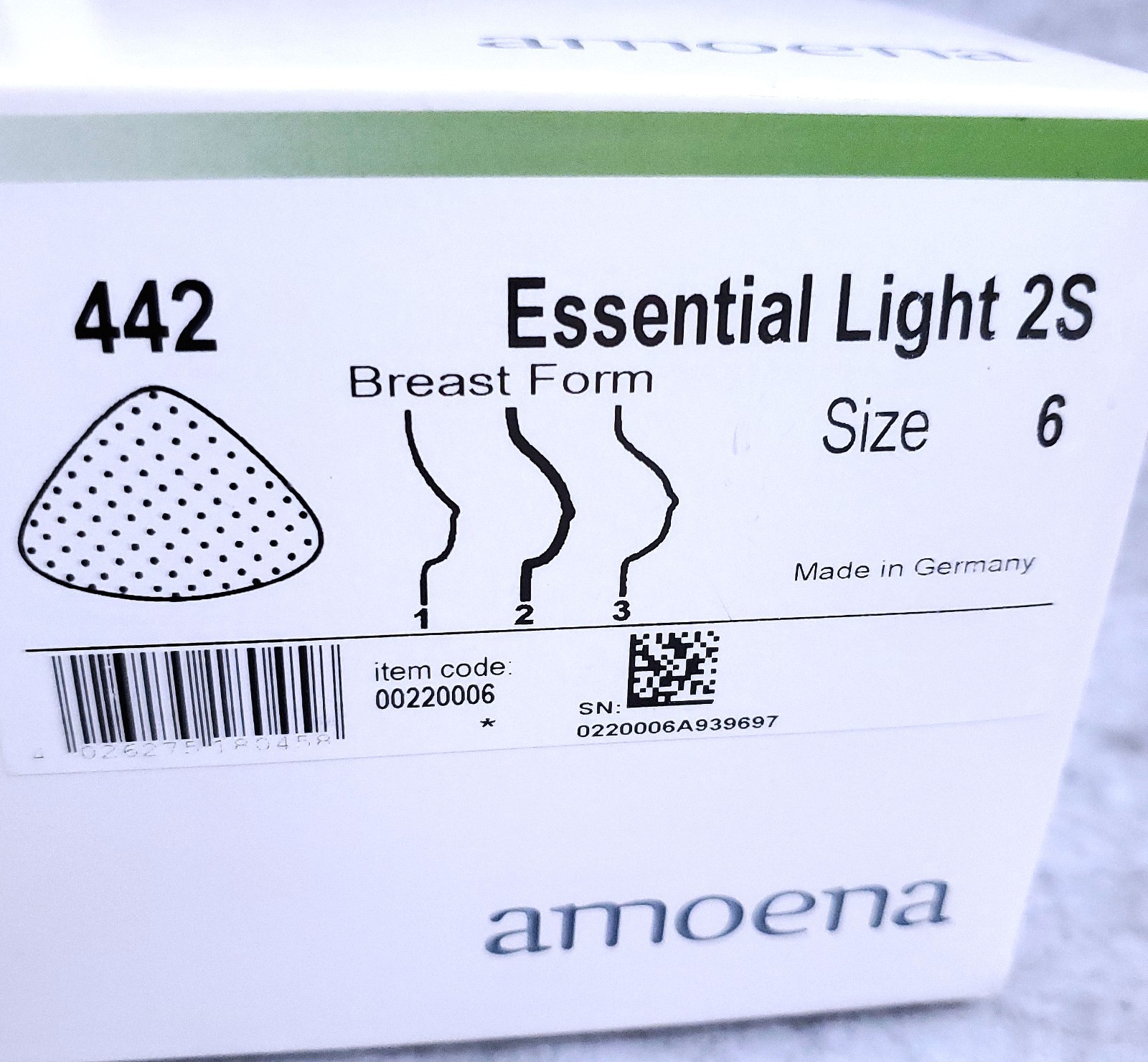 Amoena Essential Light 2S 442 Breast Form SIZE 6 W/BX PAPERS TRIANGLE LEFT/RIGHT