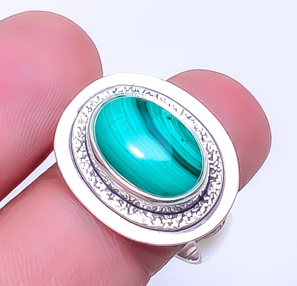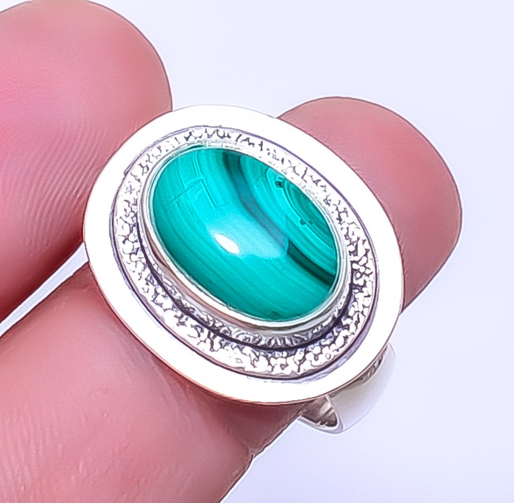 как выглядит Malachite - Congo Gemstone 925 Sterling Silver Jewelry Handmade Ring s.10 Sku45 фото