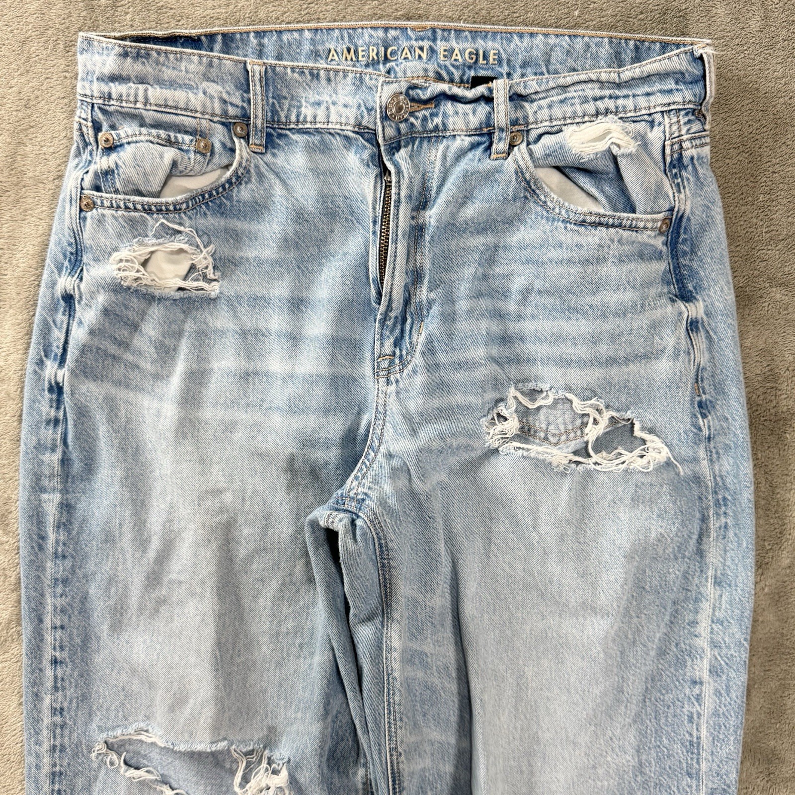 American Eagle Jeans Womens 8 Blue Super High Rise Baggy Wide Leg Ripped Denim