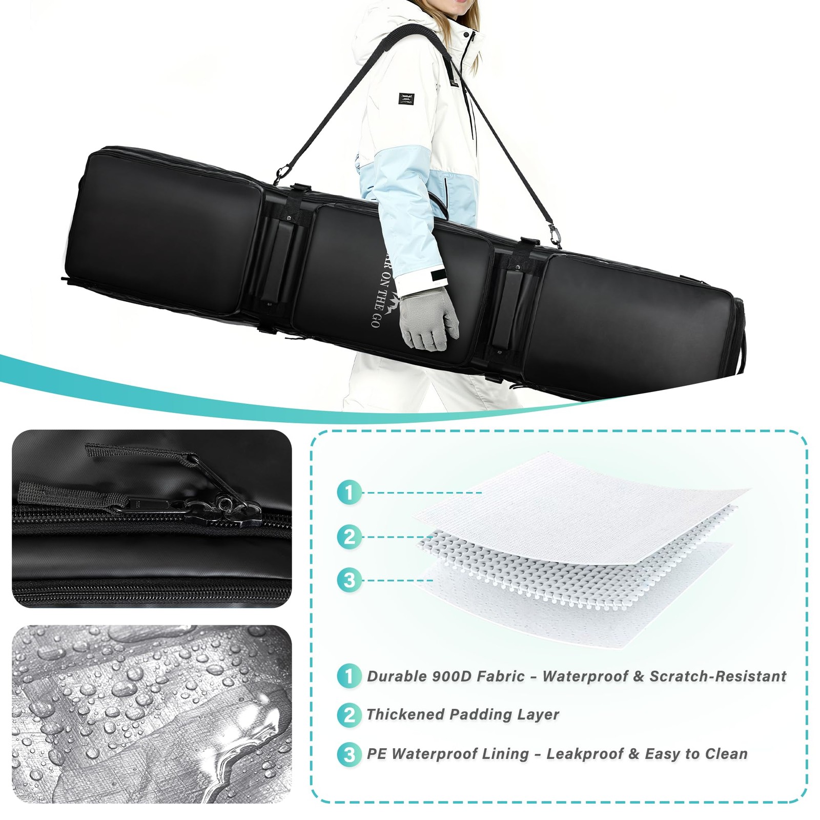 Ski Bag with Wheels, 69 73 Inch Snowboard Bag, Waterproof 900D Ski Bags for A...