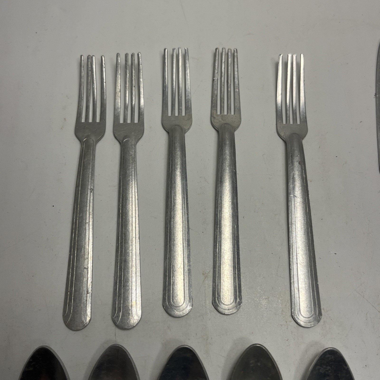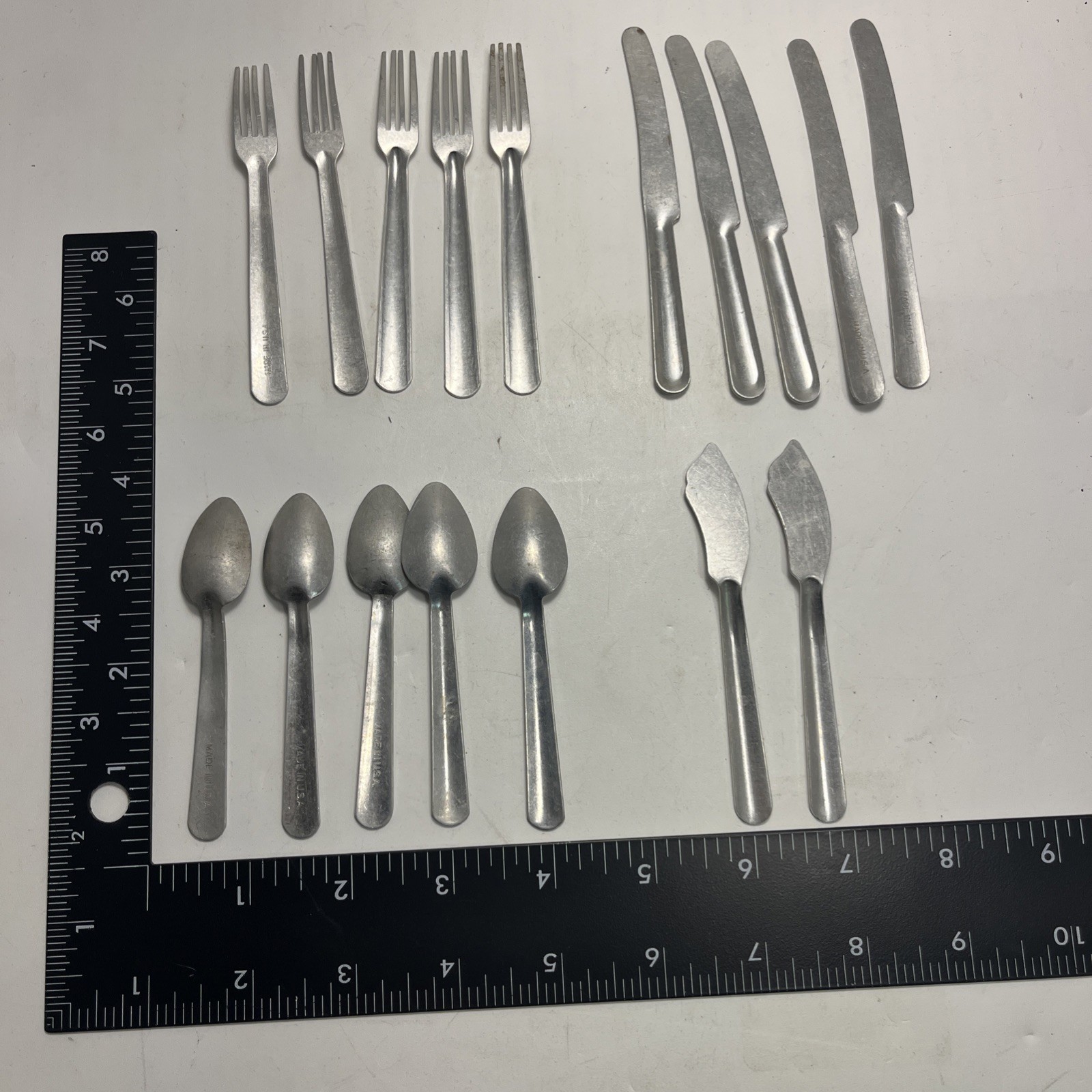 Vintage Lot of 17 1940's Childs Toy Silverware Set Made in the USA 5 Settings