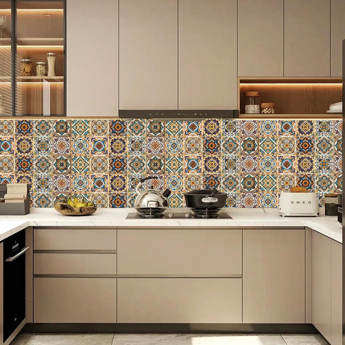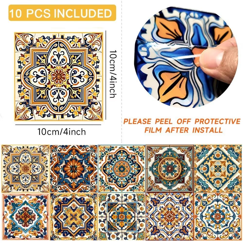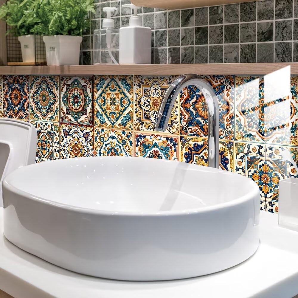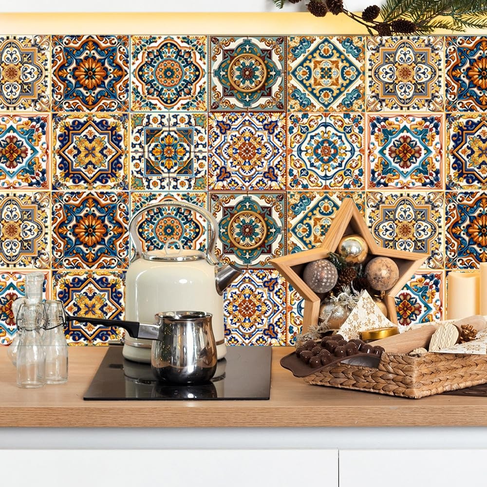 Peel and Stick Moroccan Tile Stickers, Waterproof Backsplash for Kitchen