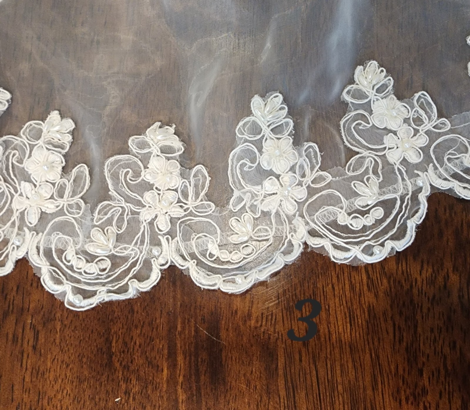 Mantilla Beaded Alencon Wedding Veil Ivory Lace Pearl Appliqu
