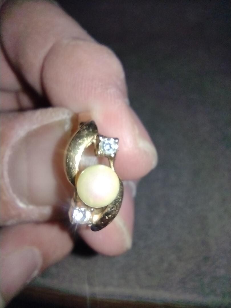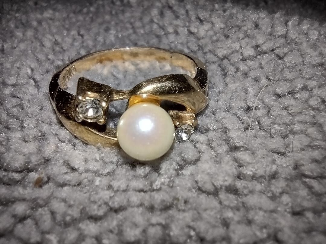 как выглядит Gold Filled Pearl And Diamond Ring Size 7.25 фото