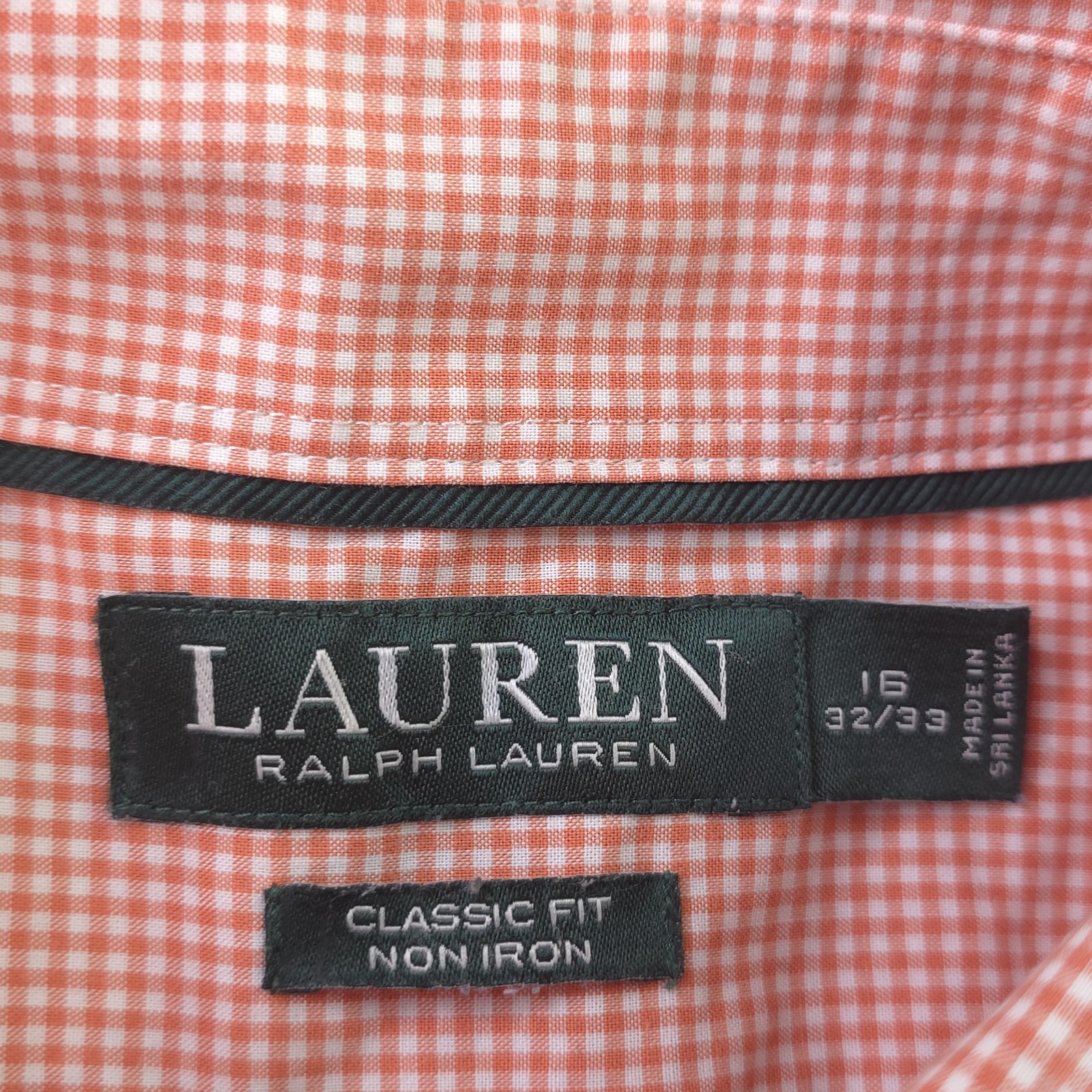 Lauren Ralph Lauren Dress Shirt 16 32/33 Classic Fit Non Iron Orange Check