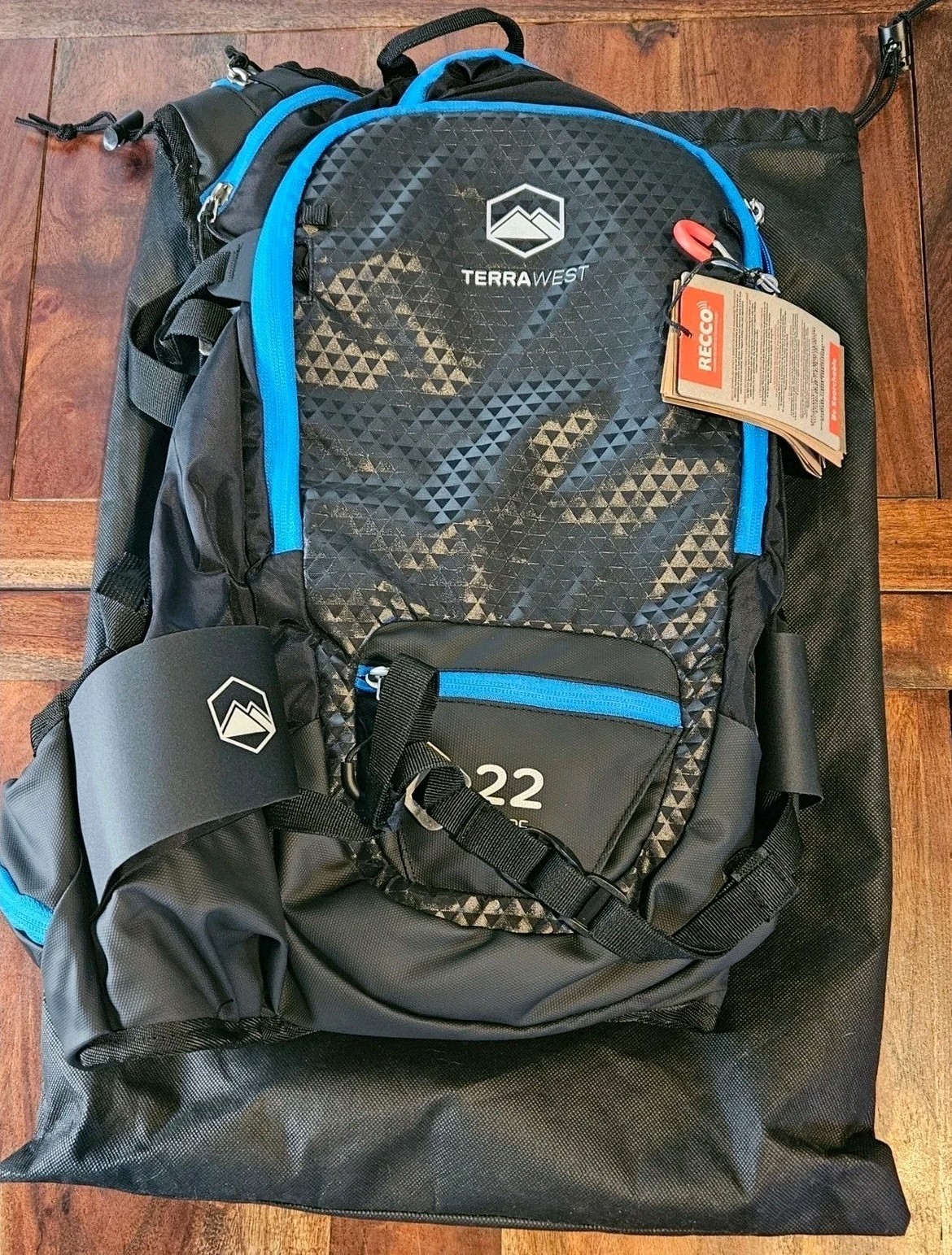 Terrawest Core 22 Avalanche Backpack RECCO Ski Snowboard Day Pack Black Blue NEW