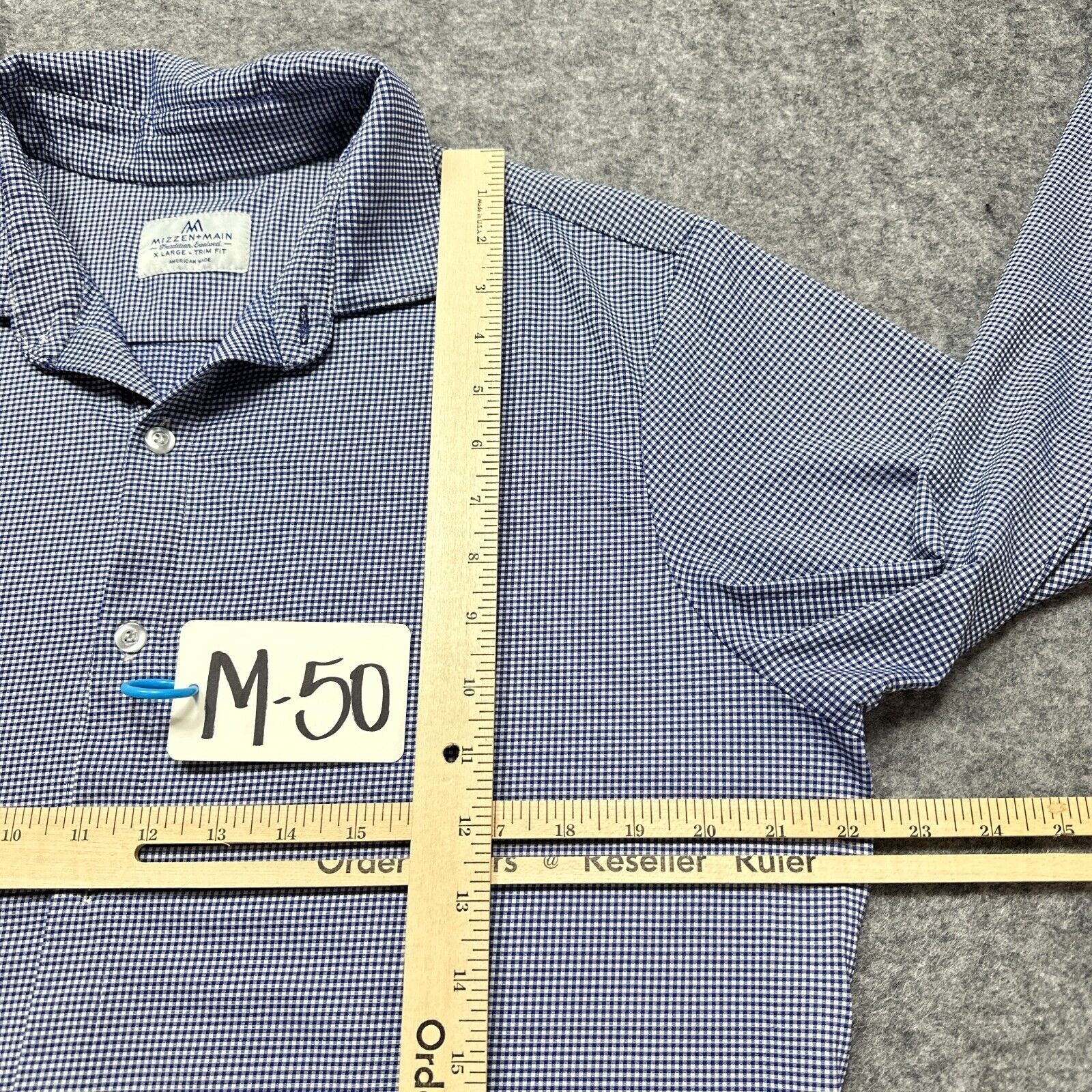 как выглядит Mizzen Main Shirt Mens XL Trim Fit Blue White Check Nylon Blend Casual фото