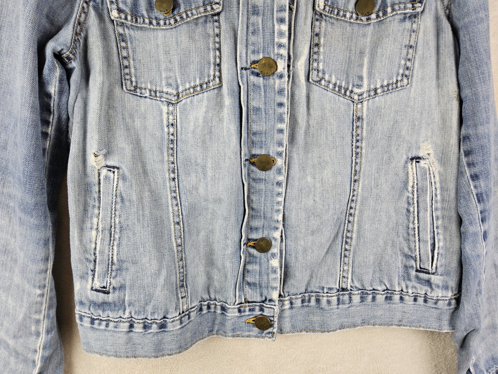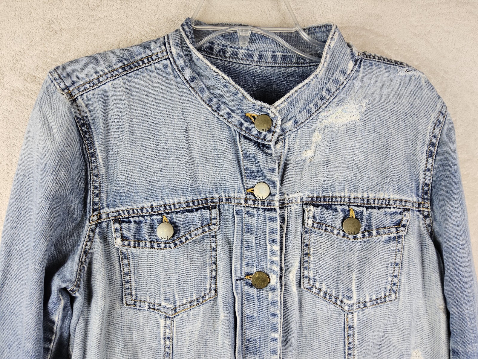 как выглядит Gap Womens Distressed Button Front Denim Jacket Size XL фото