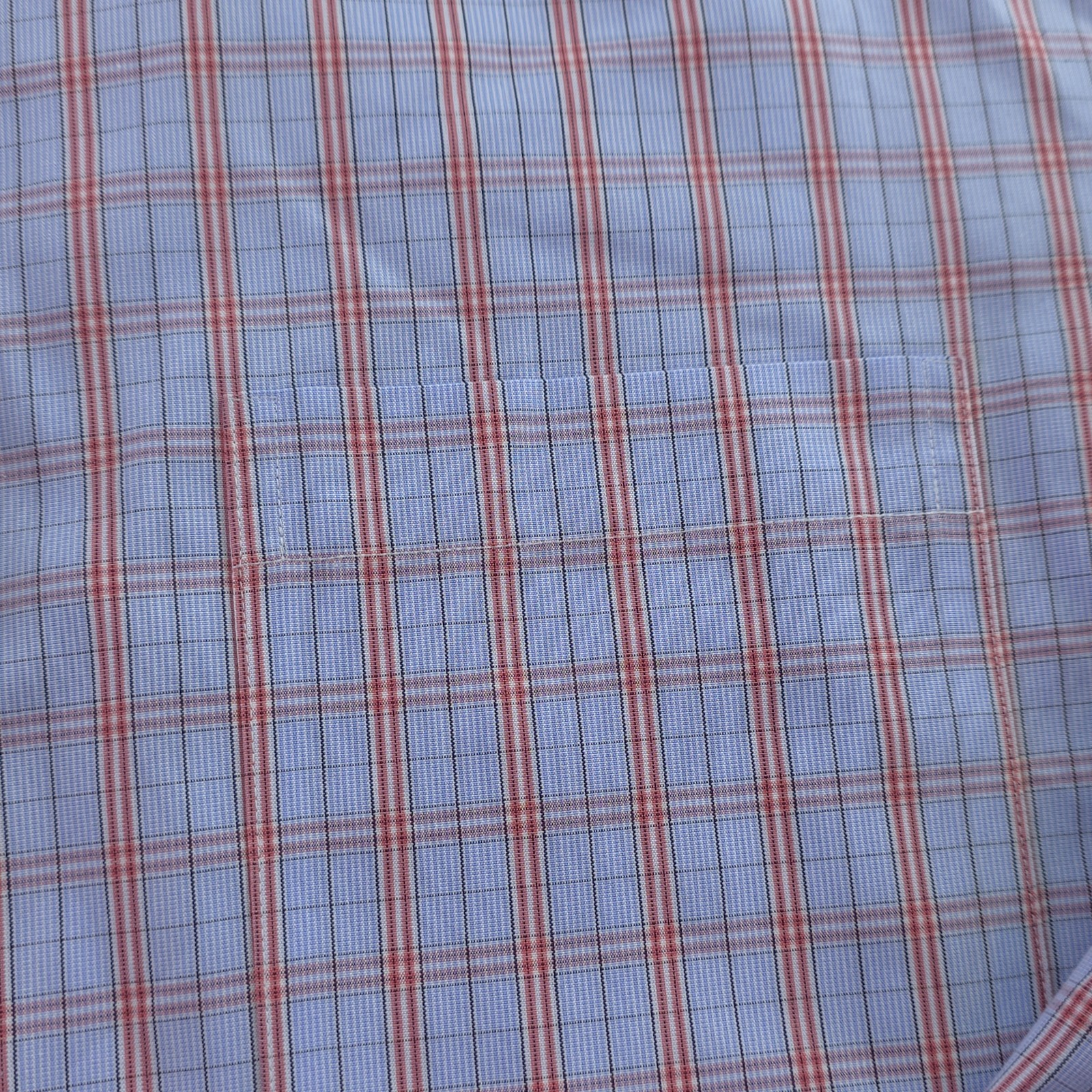 Nordstrom Dress Shirt 15.5 32/33 Trim Fit Wrinkle Free Blue Red Check Cotton