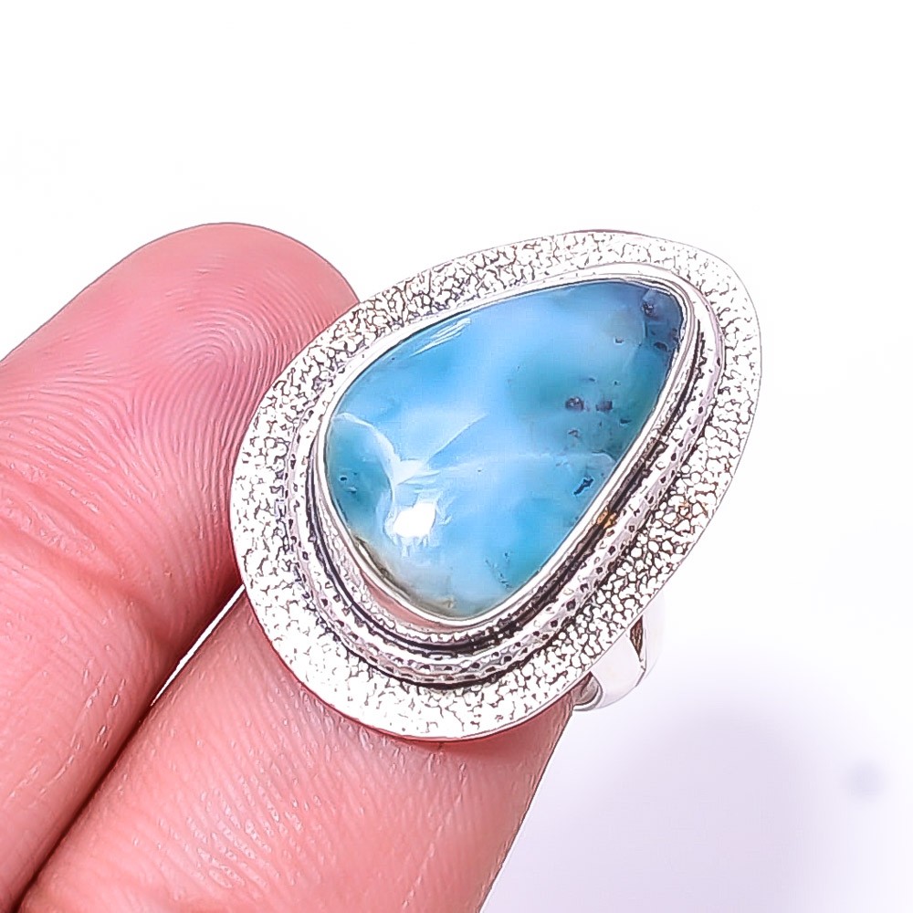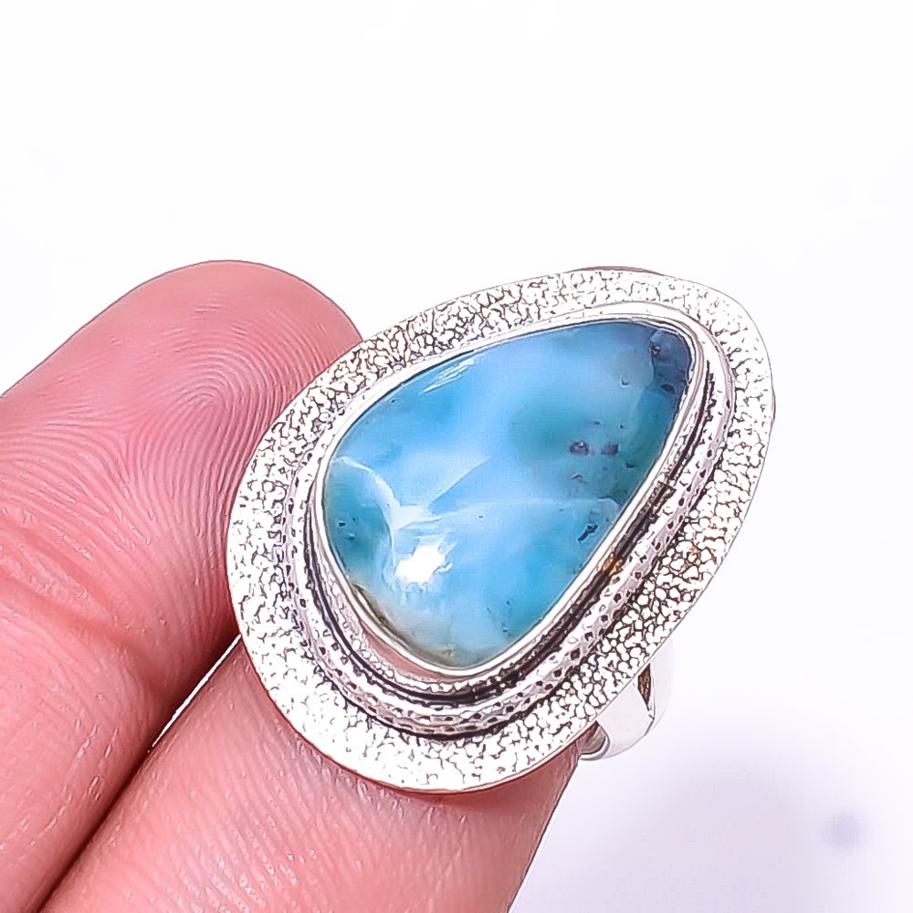 Natural Larimar Designer Handmade 925 Sterling Silver Ring s.7 Sku17
