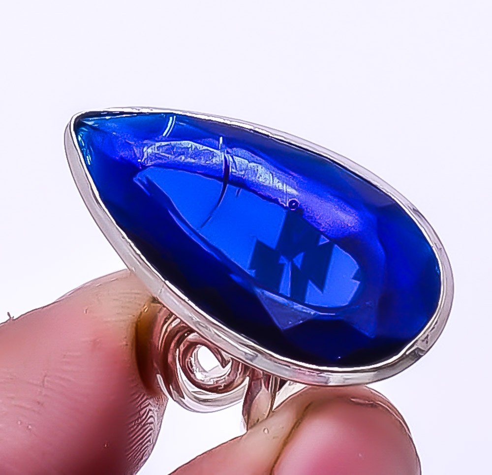 Blue Sapphire Simulated 925 Sterling Silver Handmade Jewelry Ring s.7 A328