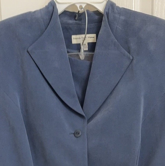 как выглядит VINTAGE Amanda Smith 3-Piece Skirt Suit Blazer Blue Faux Suede Women s Size 18W фото