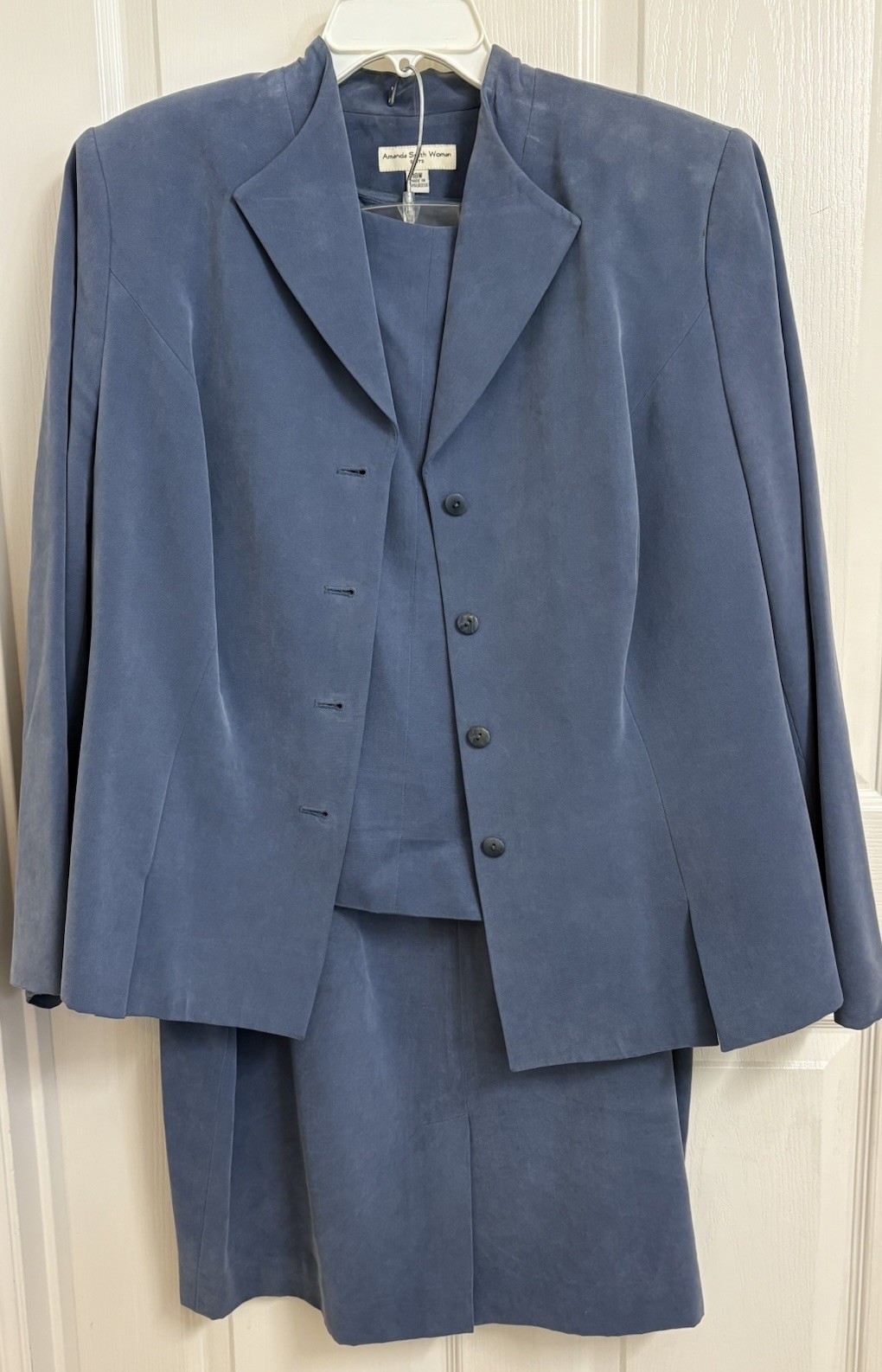 VINTAGE Amanda Smith 3-Piece Skirt Suit Blazer Blue Faux Suede Women s Size 18W