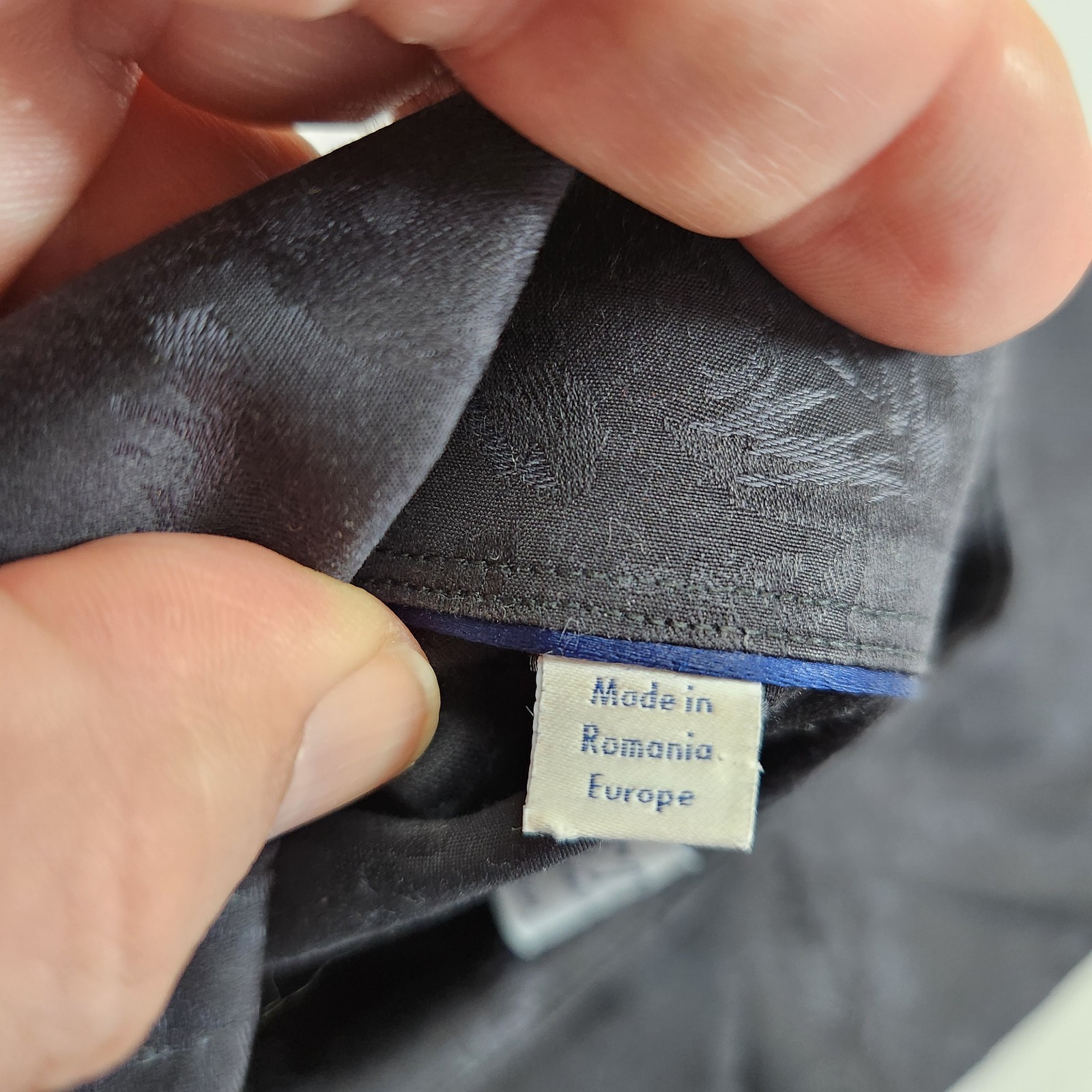 как выглядит ETON Long Sleeve All Black Floral Print Dress Shirt Size 15.5 39 Slim Fit фото