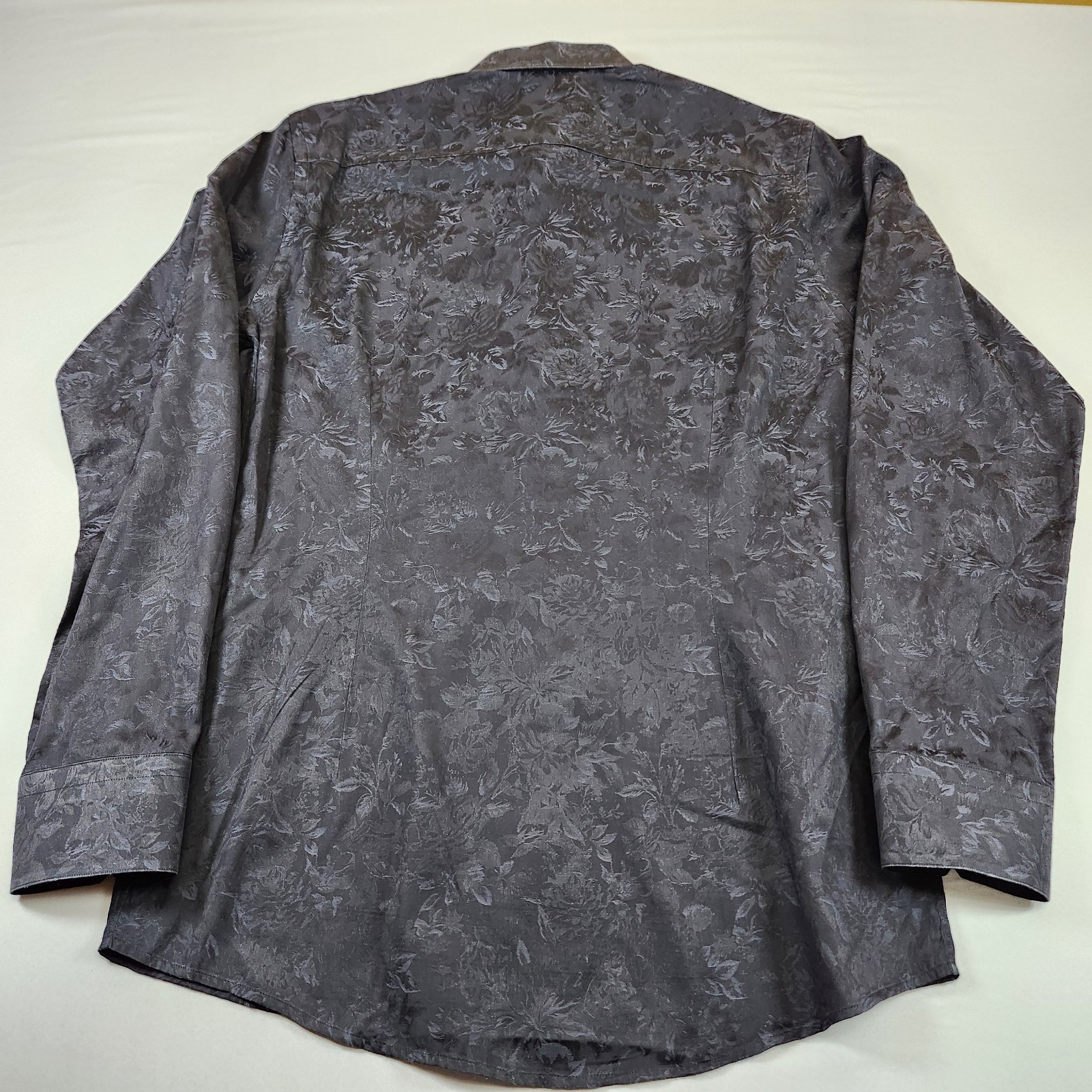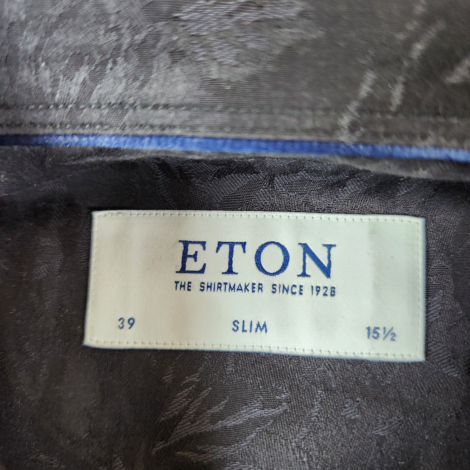 ETON Long Sleeve All Black Floral Print Dress Shirt Size 15.5 39 Slim Fit