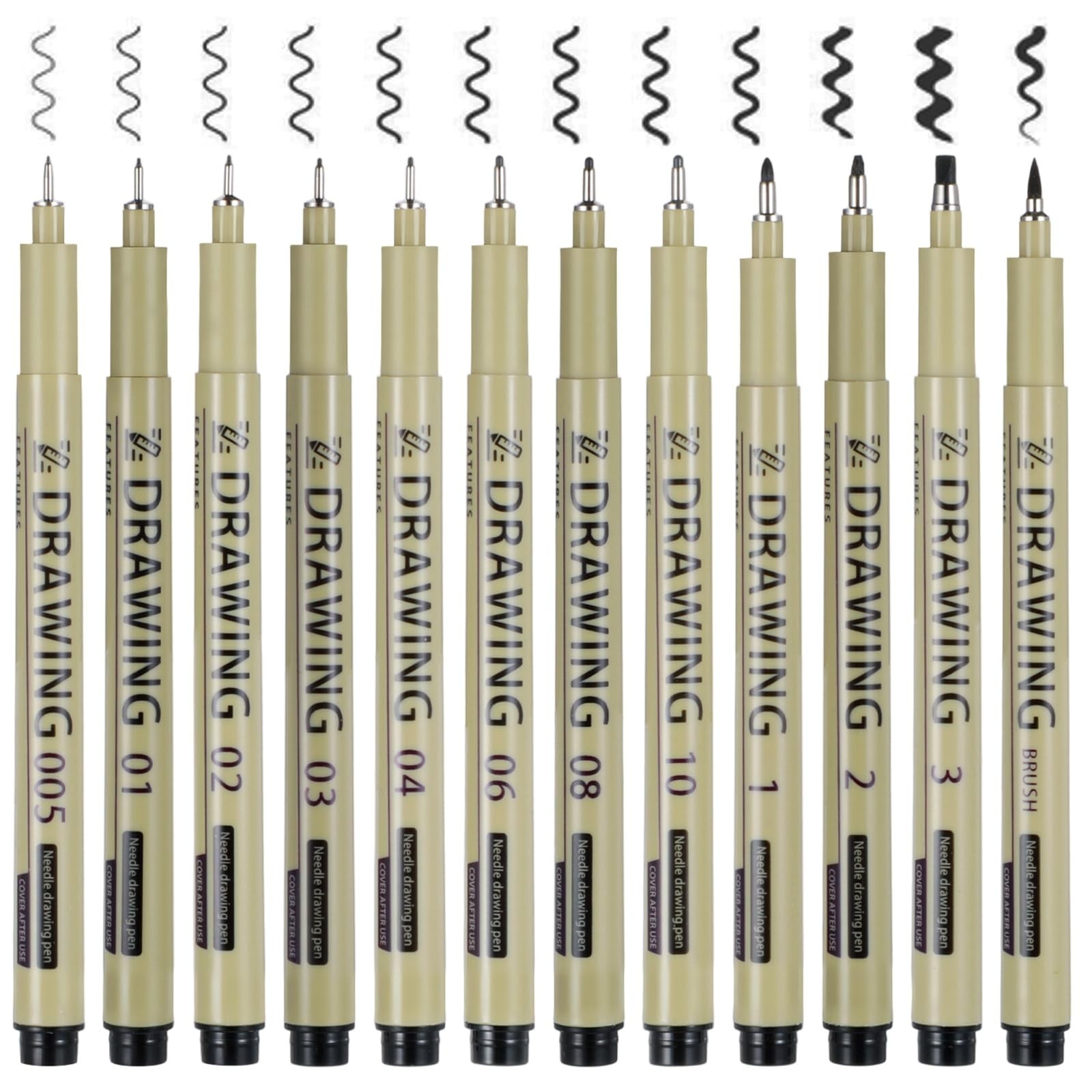Fineliner Drawing Art Pens Black Fineliner Pens 12PCS Micro-Pen Fineliners In...