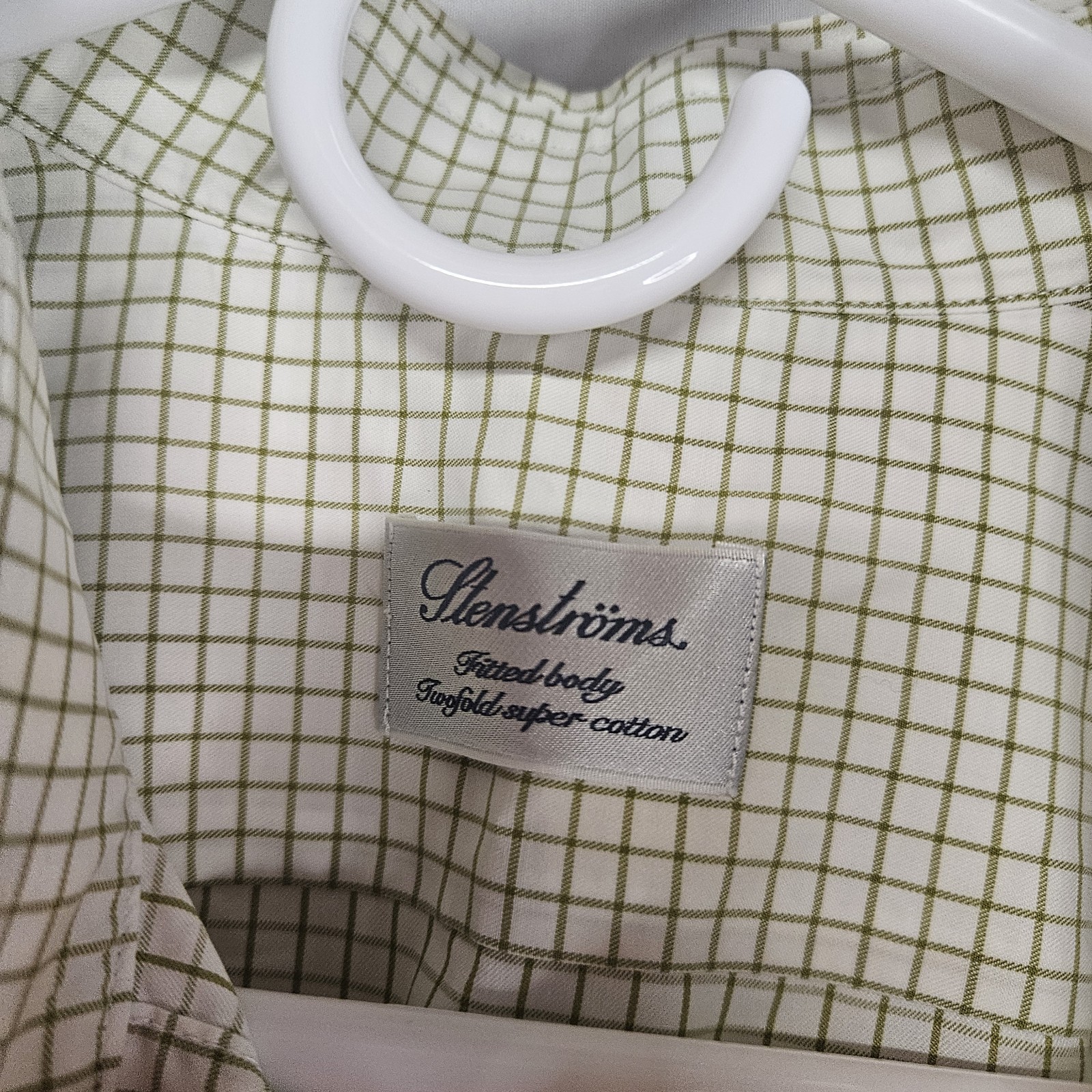 Stenstroms Shirt Mens 16.5 42 Green Check Fitted Twofold Super Cotton Office
