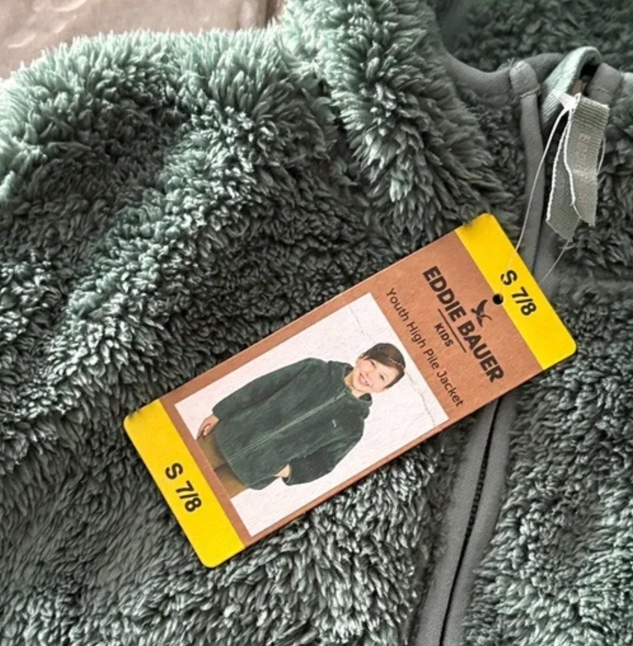 NEW EDDIE BAUER GREEN FULL ZIP FLEECE HOODIE JACKET SIZE S 7/8 KIDS