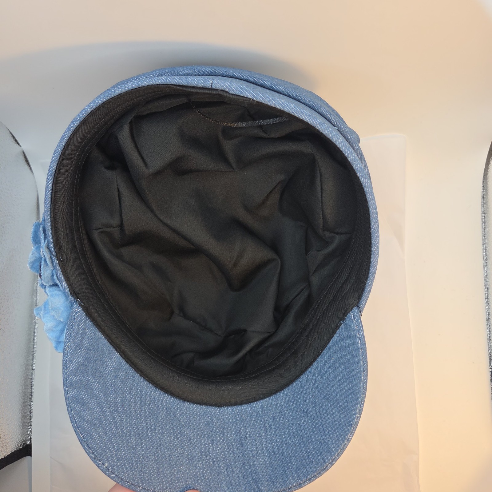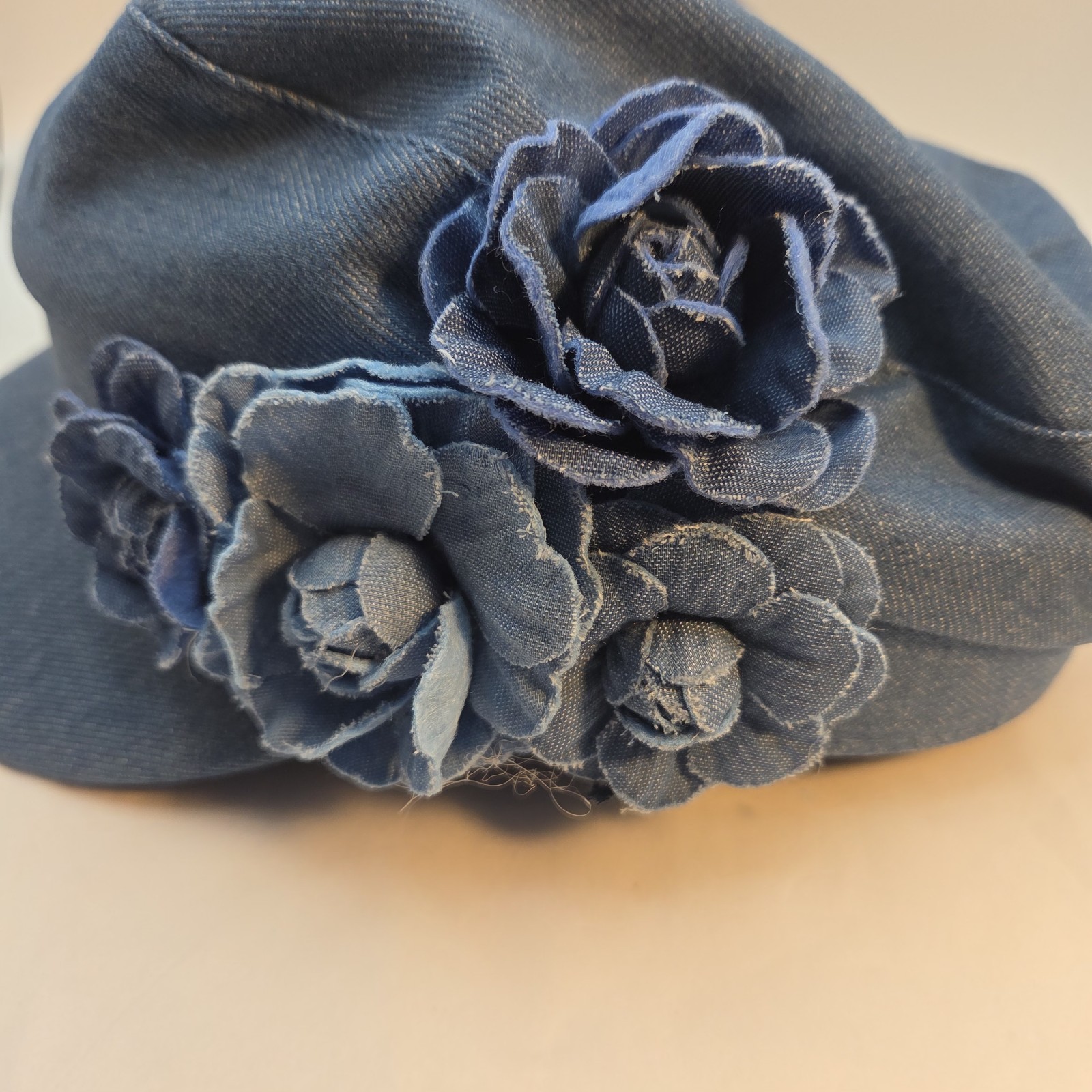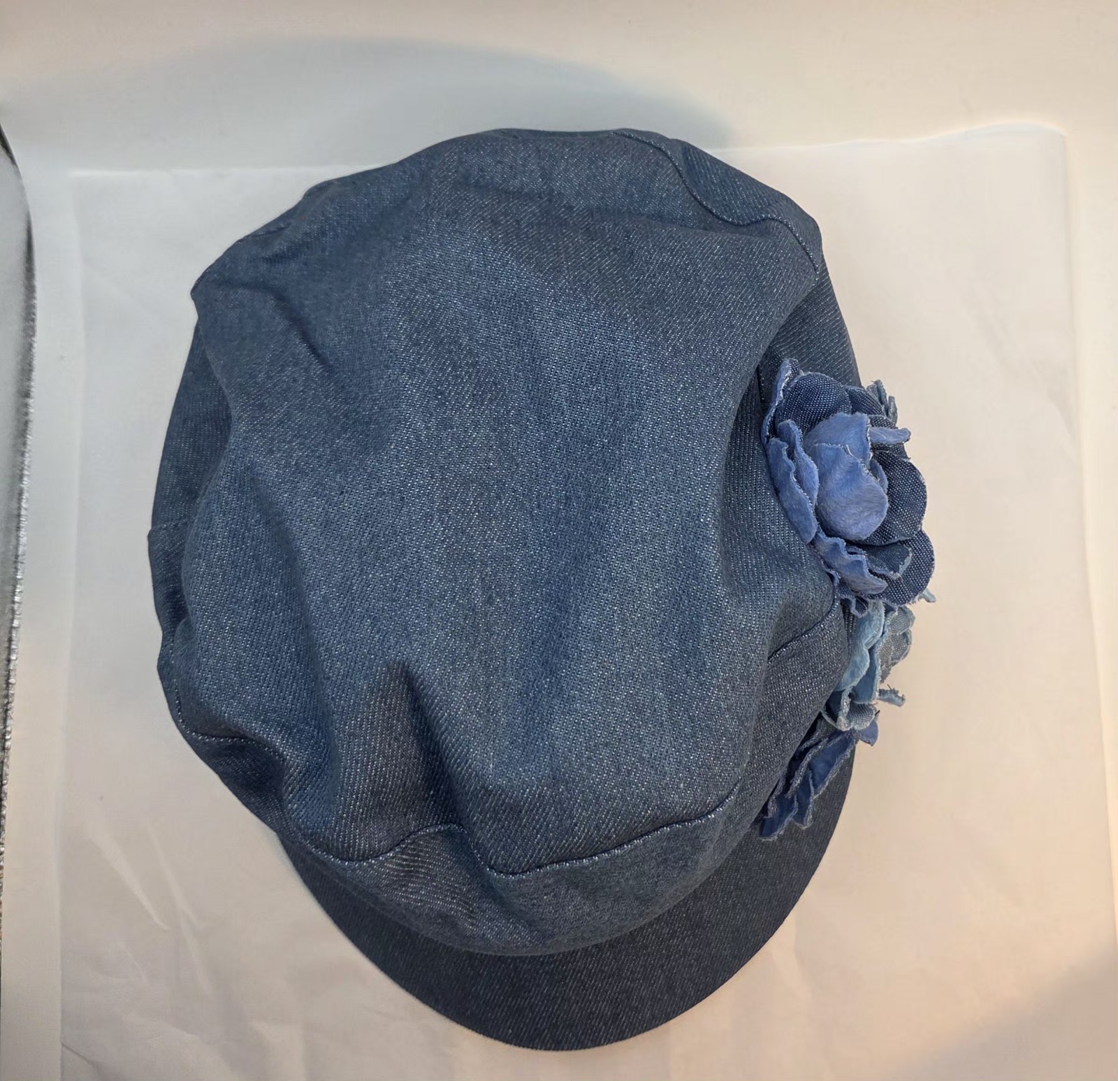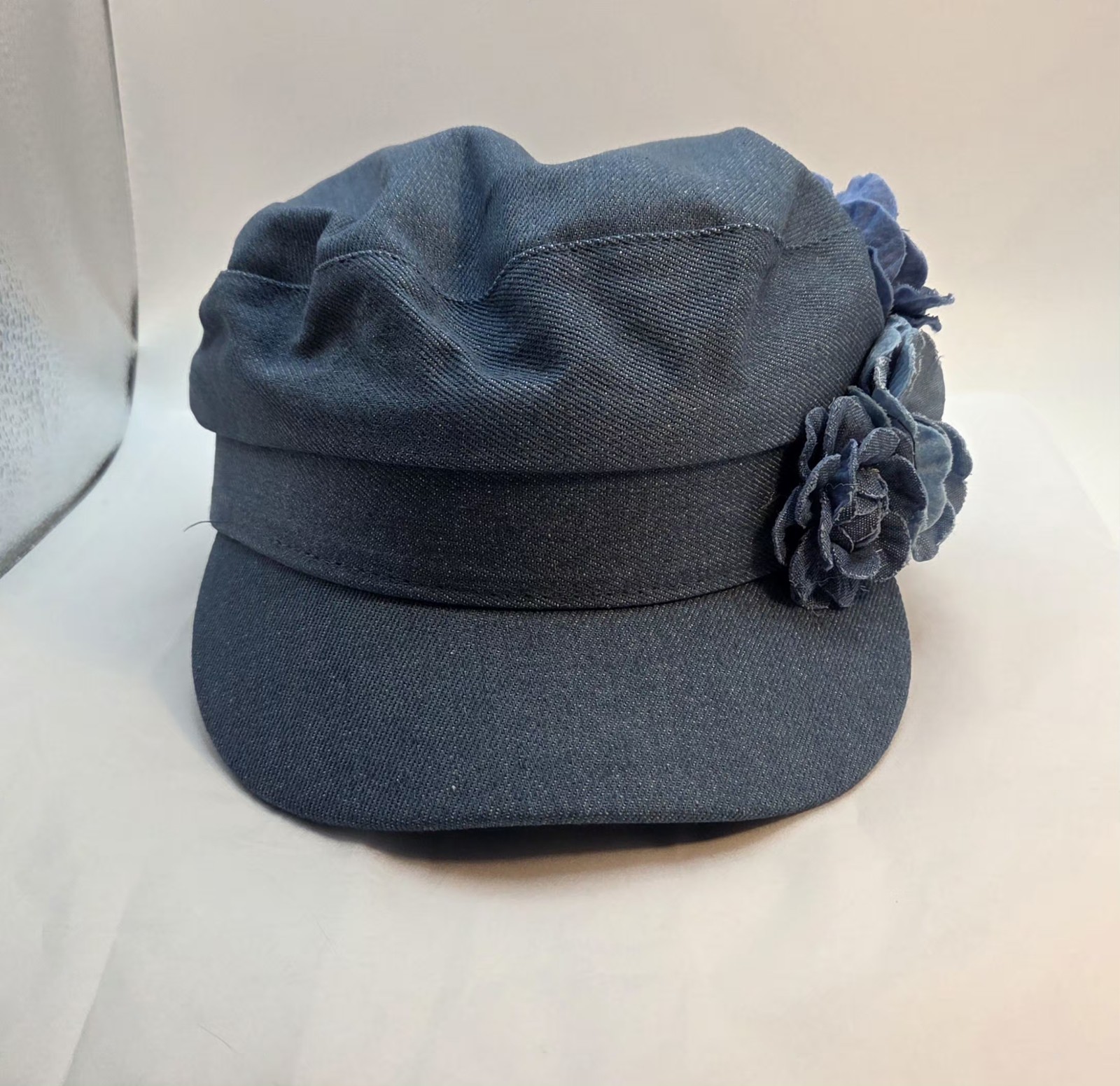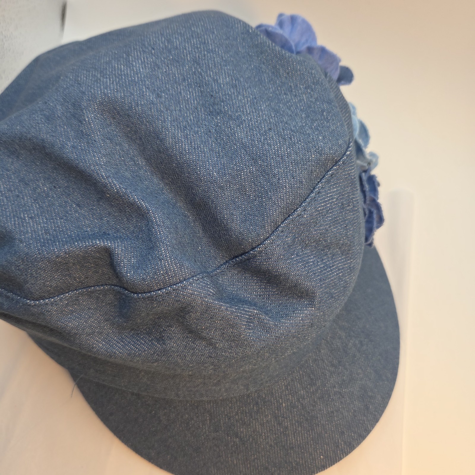 как выглядит Womens Floral Denim Newsboy Cap Denim Flower Decor Casual Hat for Artists фото