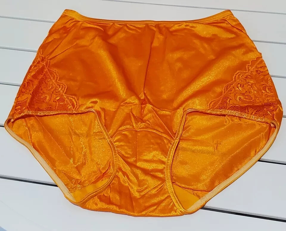 Shadowline Shiny Nylon Lace Granny Panty Full Cut 8/XL ORANGE Naranja 17082