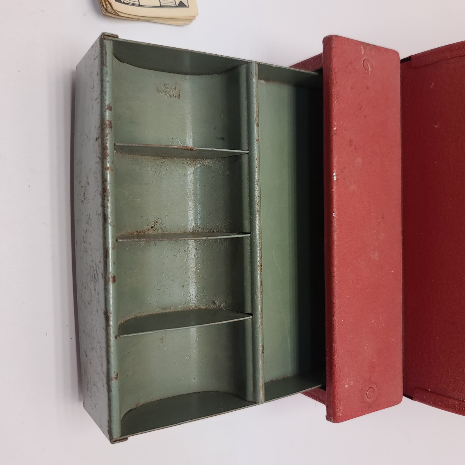 как выглядит Vintage Red 1950s Western Stamping Co Tin Tom Thumb Toy Cash Register w/ Coins фото