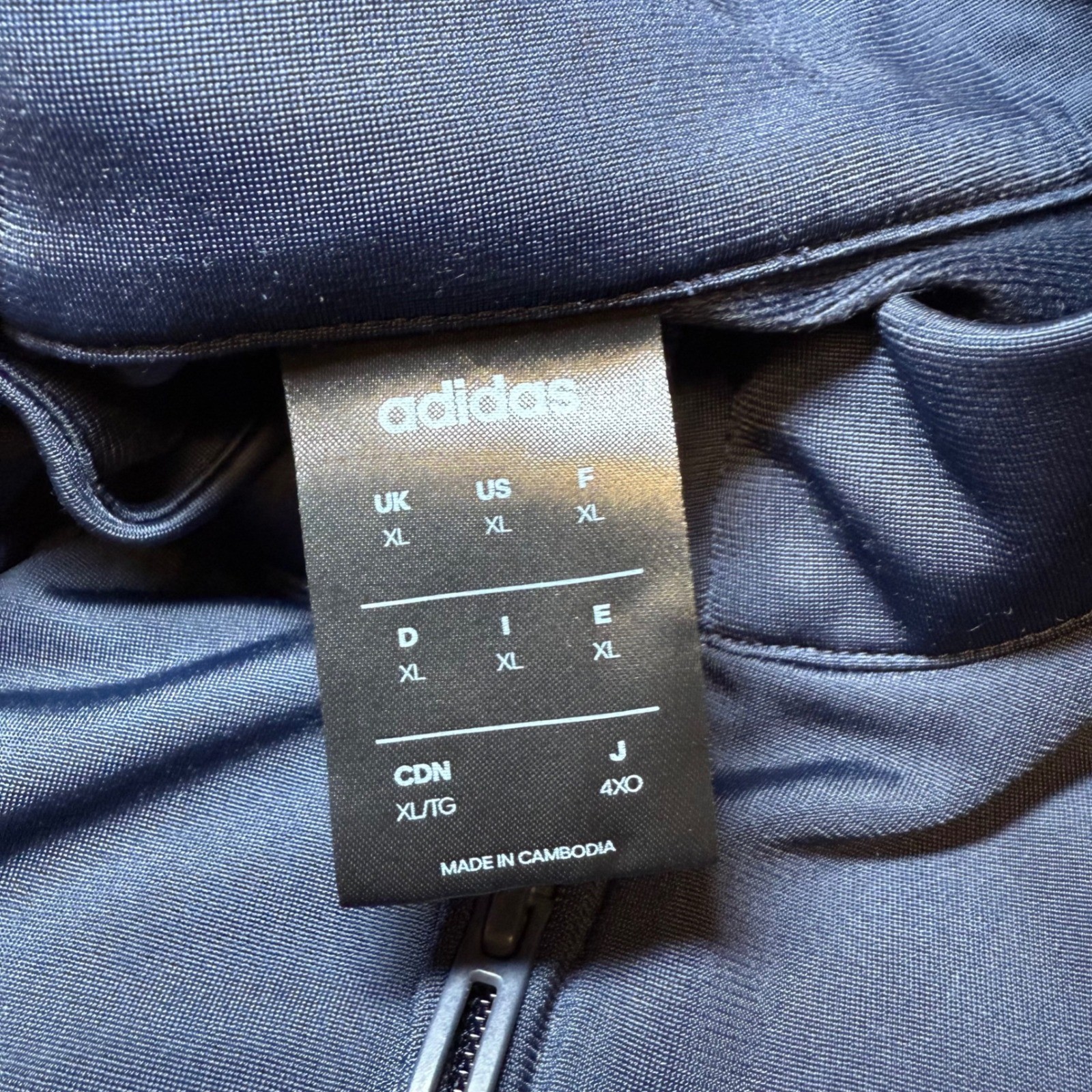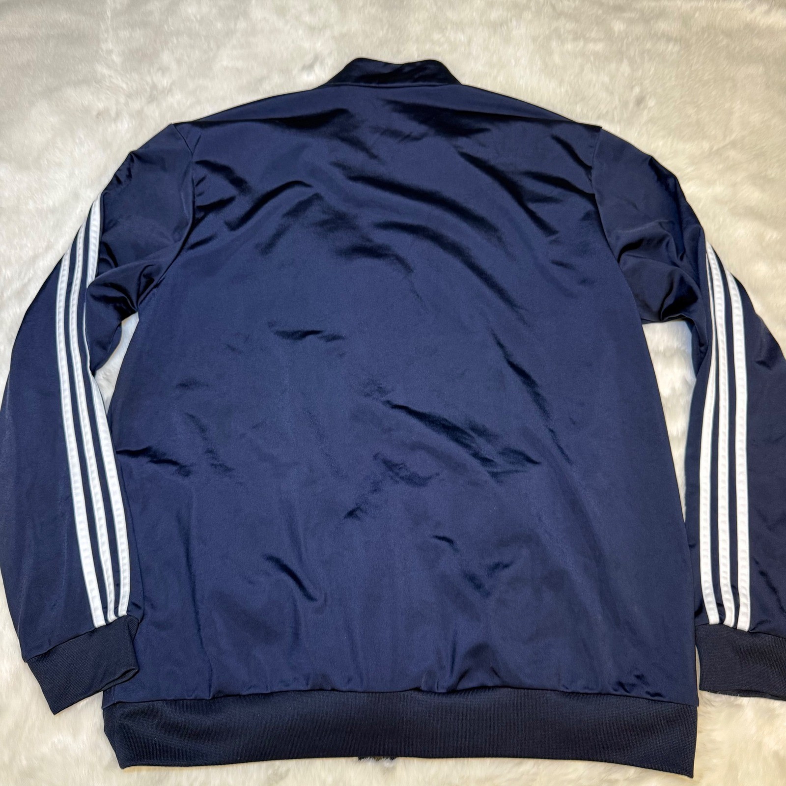 как выглядит Adidas classic track jacket in navy and white 3 stripe style фото