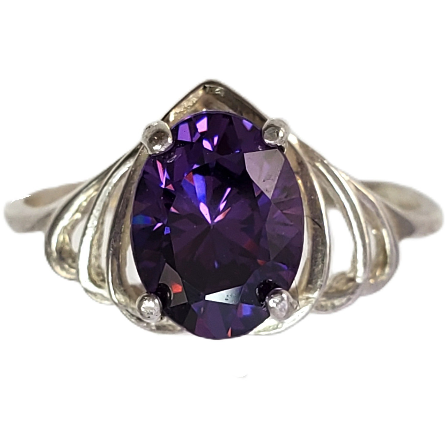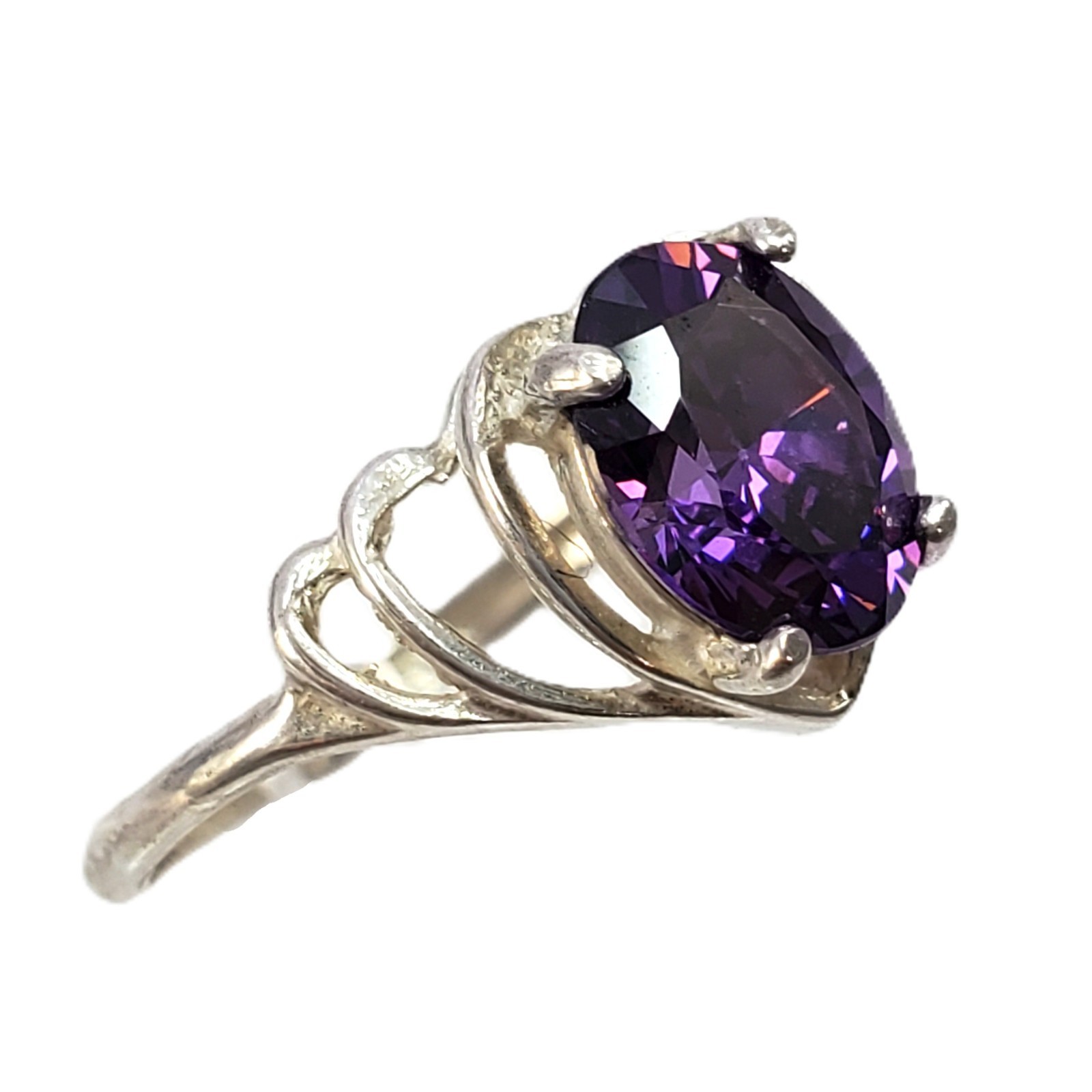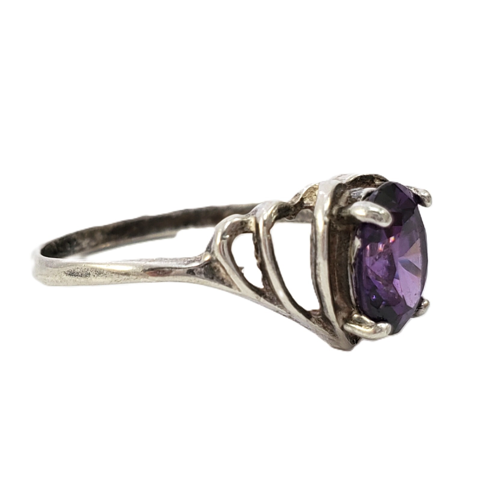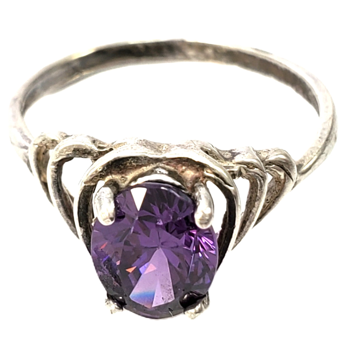 STERLING SILVER Oval Purple Stone Ring Size 5.5, 1.8g