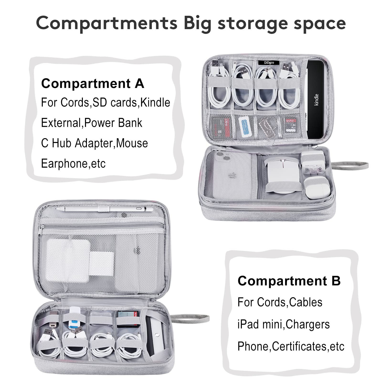 Light Grey Large Cable Organizer Bag Charger Cord Travel Case Tech Accessories