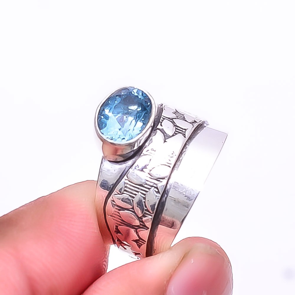 как выглядит London Blue Topaz - Brazil Designer Handmade 925 Sterling Silver Ring s.6.5 Su55 фото