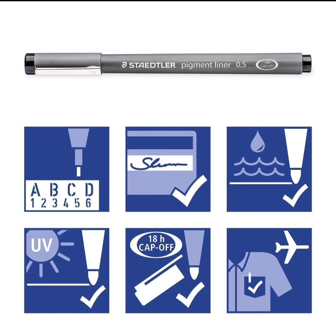 как выглядит Staedtler Pigment Liner Pack, Black, 6 Pens, 6 Count Pack of 1 , Black фото