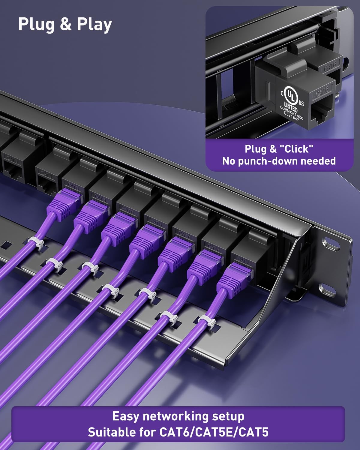 24 Port Keystone Patch Panel 1U 19-Inch, with 25-Pack UL-Listed UTP CAT6 Keys...