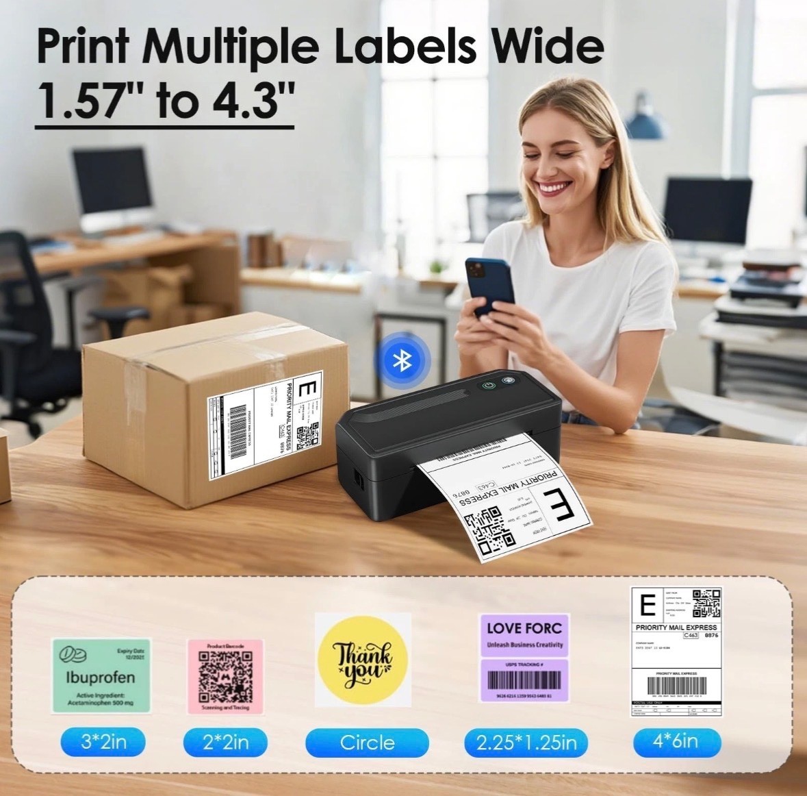Bluetooth Thermal Label Printer -4x6 smaller-Prints Business Shipping Labels